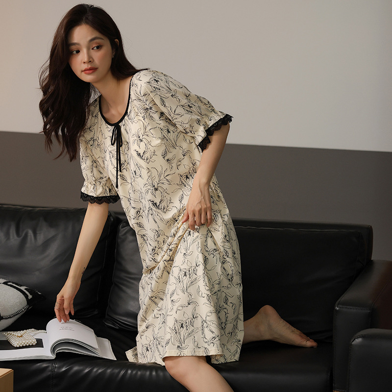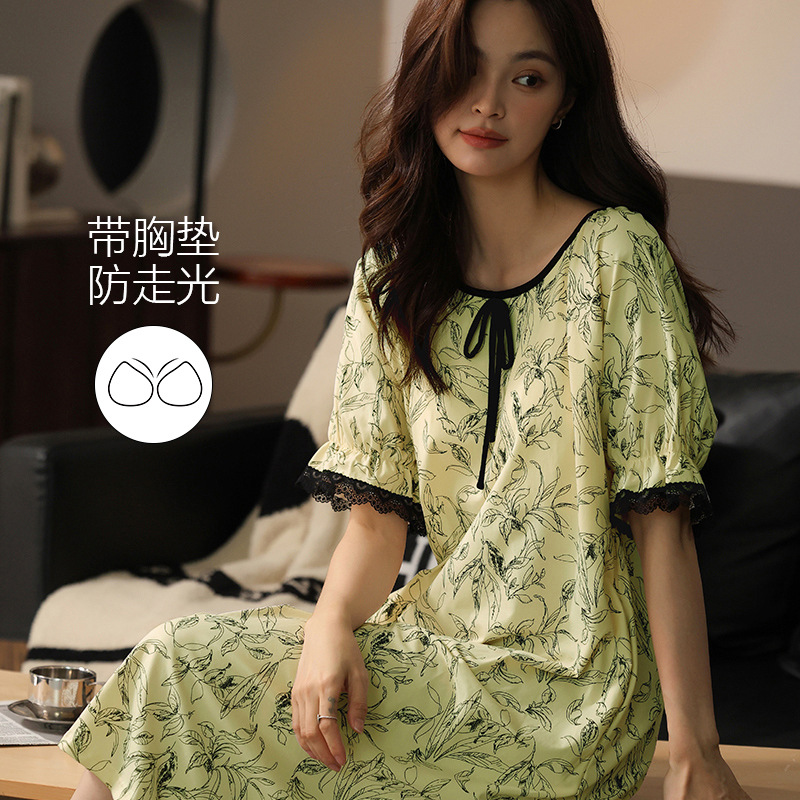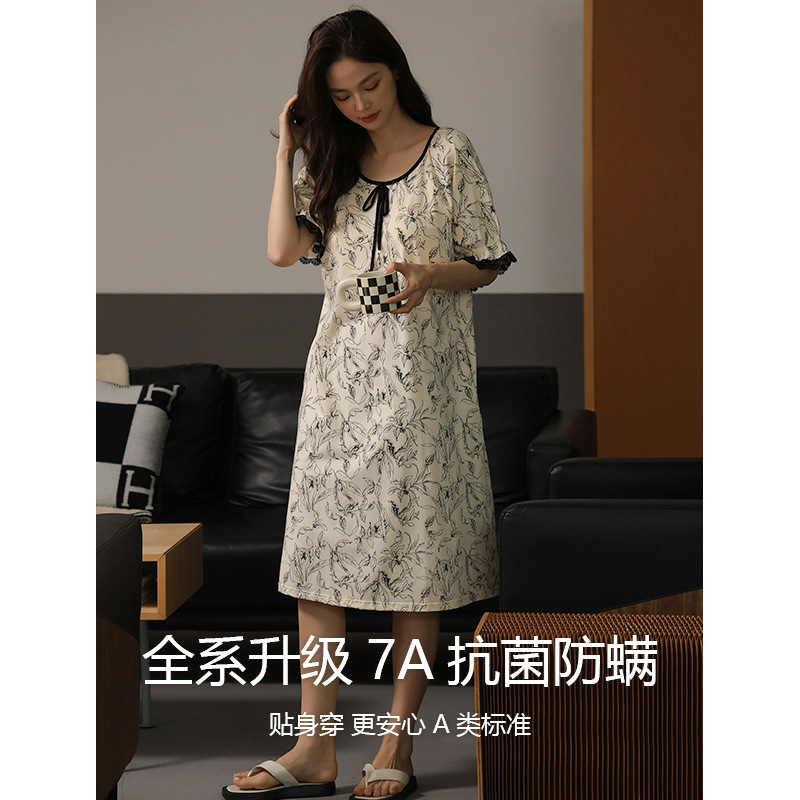 【抗菌爽棉】带胸垫睡裙女夏季短袖新款碎花高级感夏天家居服