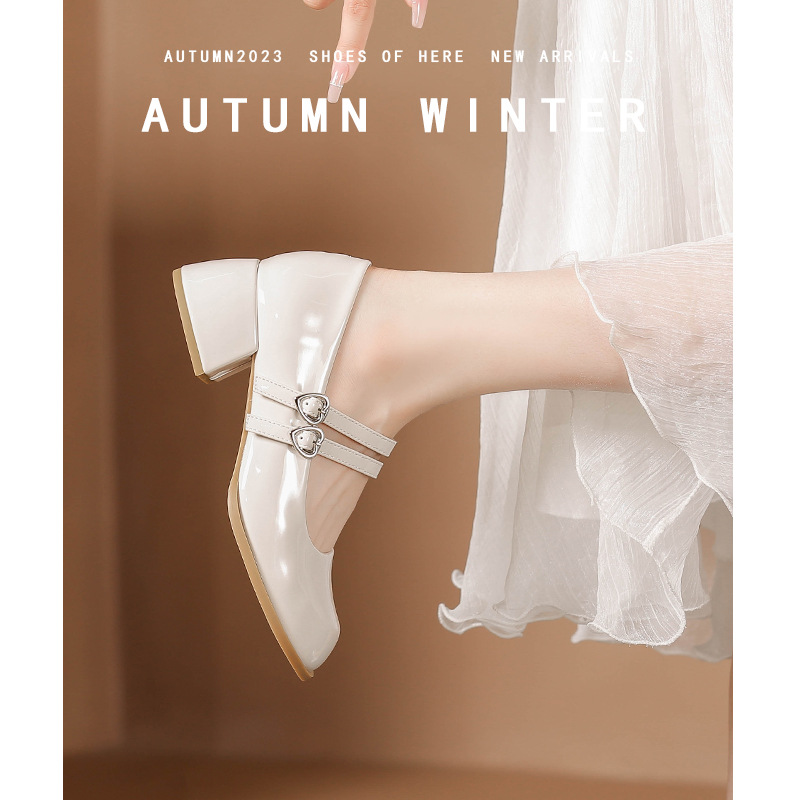 圆头玛丽珍鞋女双搭扣春季新款晚晚风浅口粗跟法式气质单鞋
