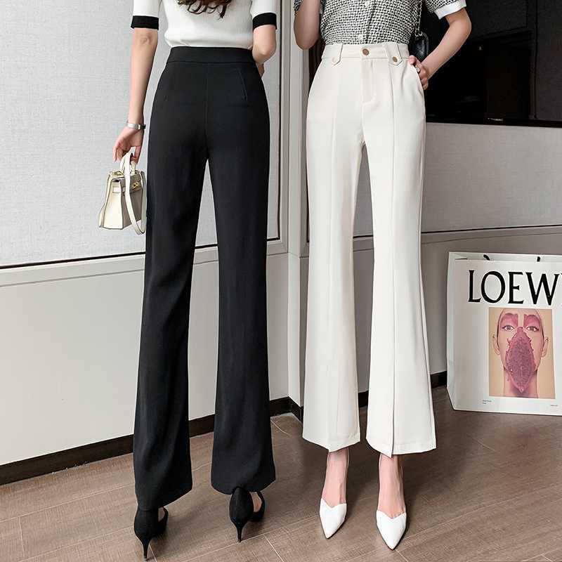显瘦长裤女春夏新款韩版微喇叭裤韩版开叉垂坠感休闲高腰裤子