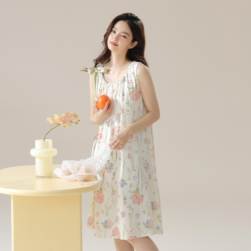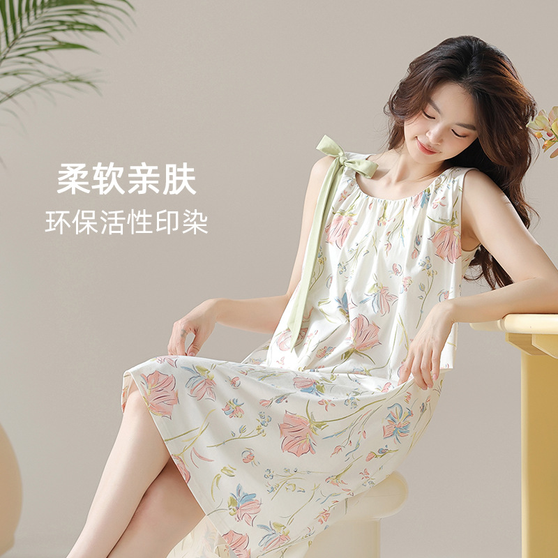 【抗菌新疆棉】夏季纯棉睡裙女款中长裙公主风无袖薄款家居服爆款