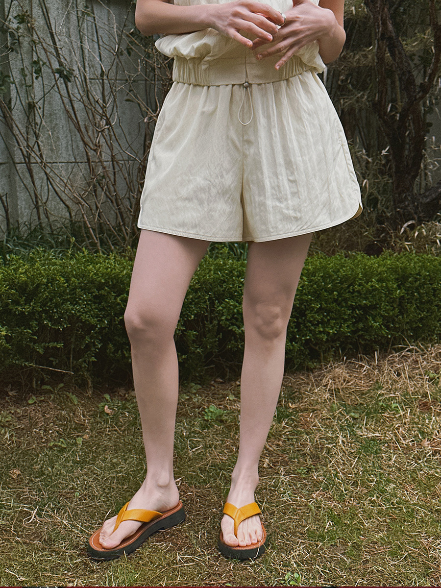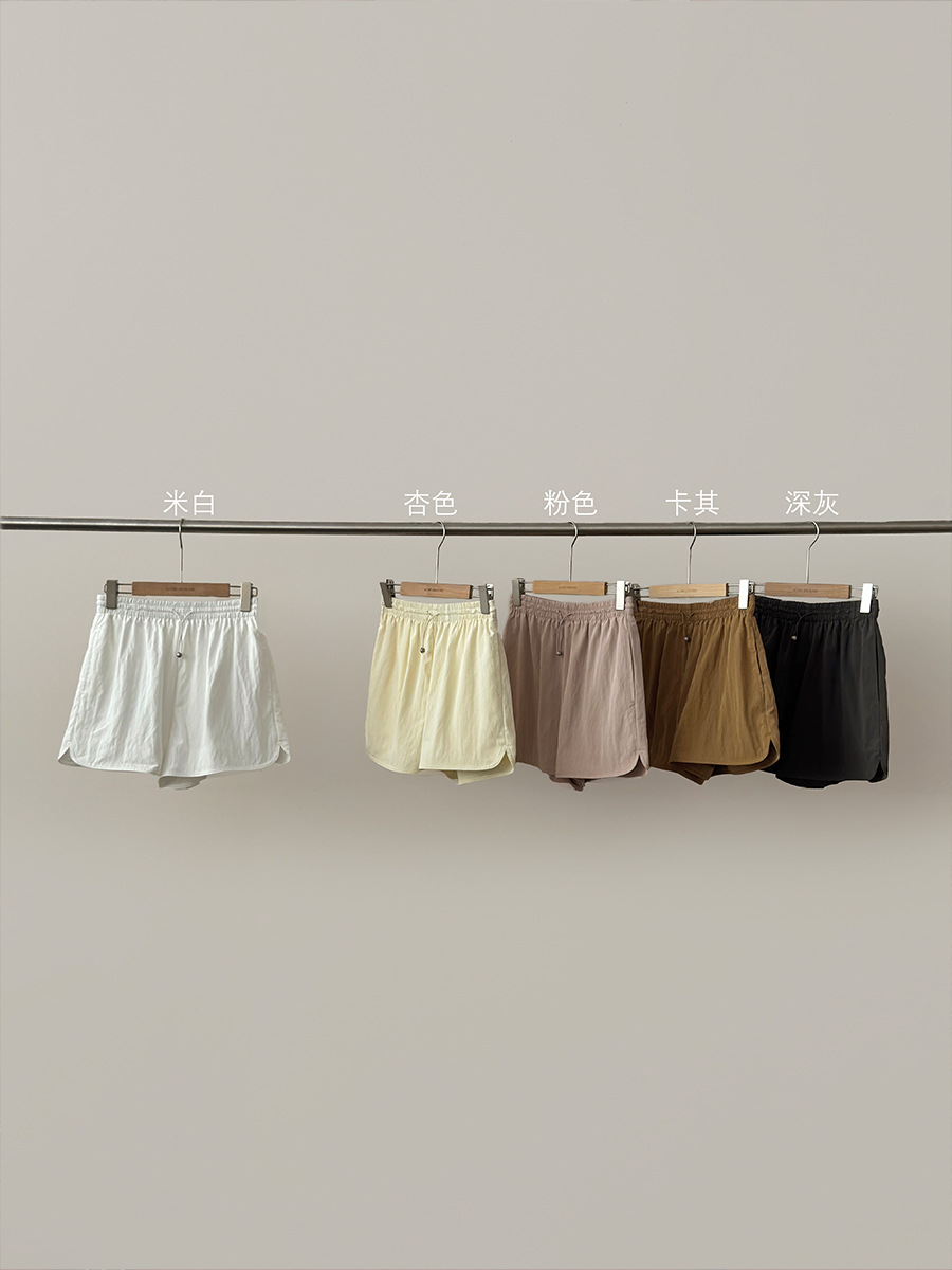 精致橡筋腰五分休闲裤女夏季新款韩系微皱阔腿短裤