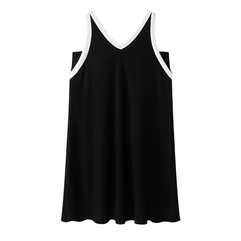 带胸垫睡裙女夏季黑色莫代尔背心家居服纯色冰丝吊带睡衣