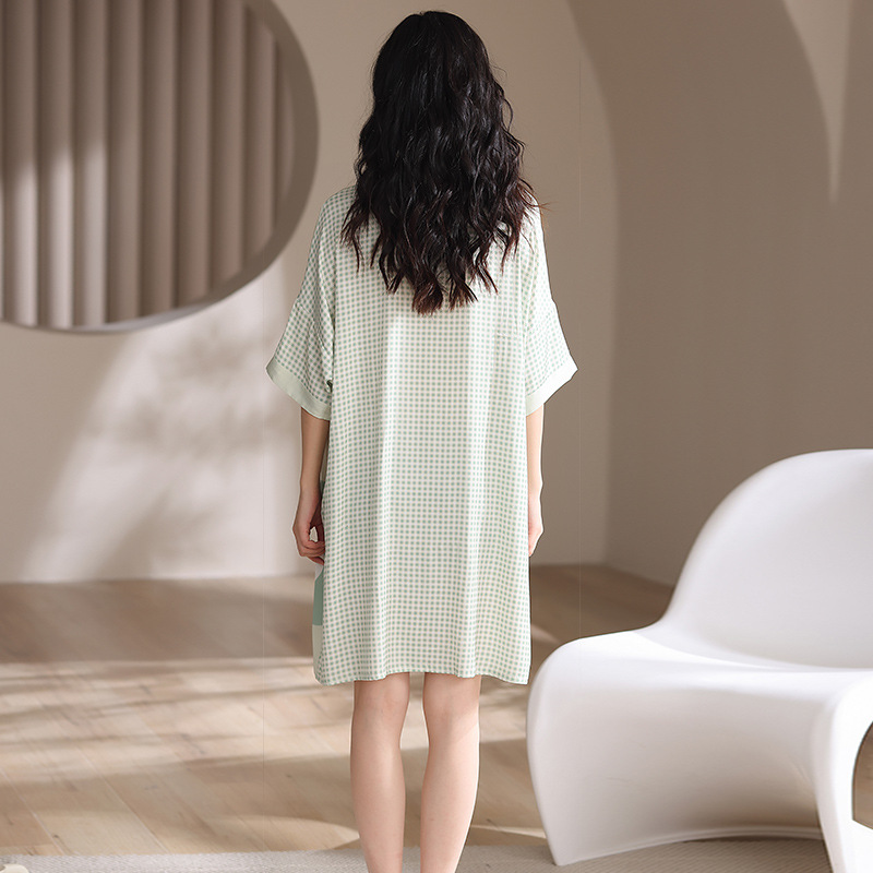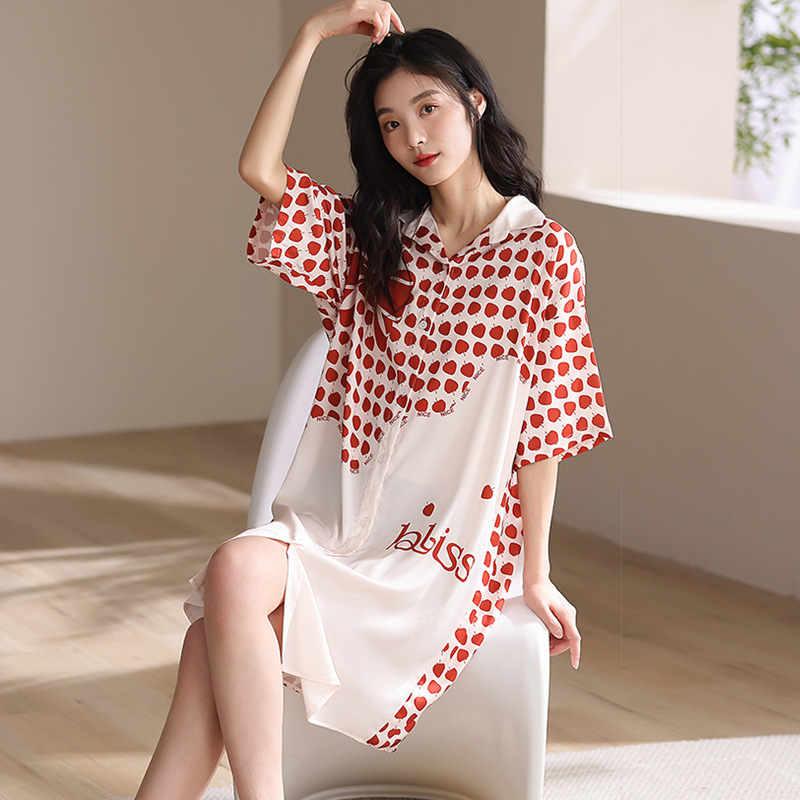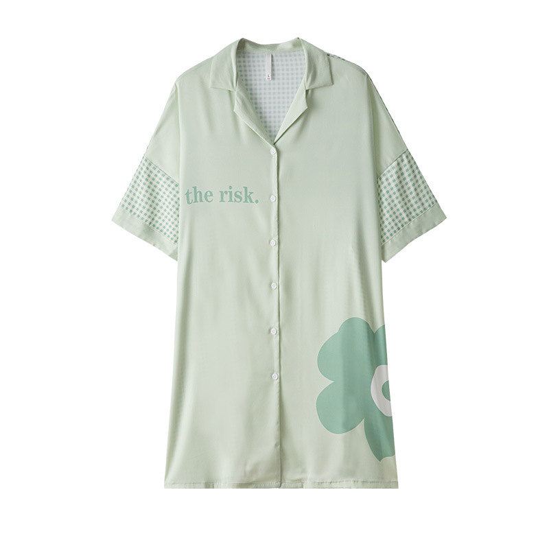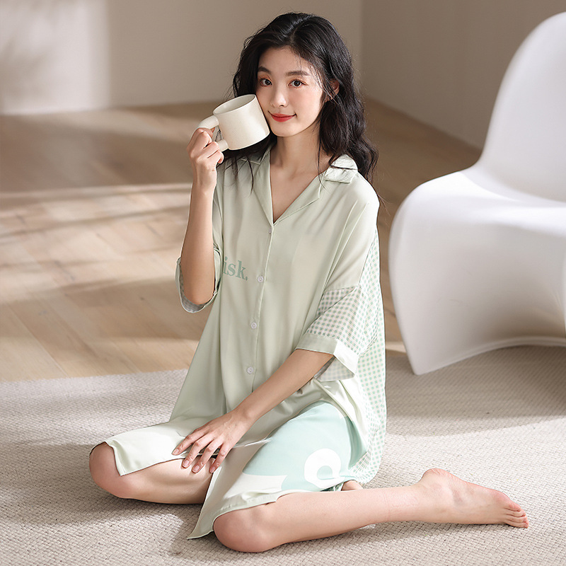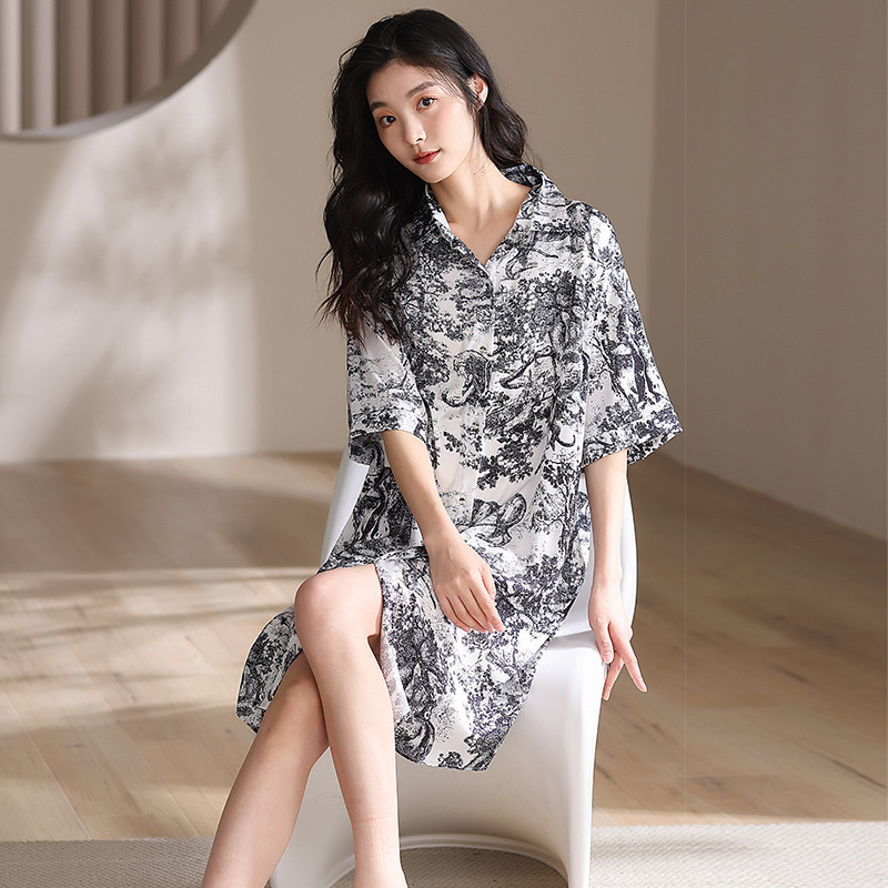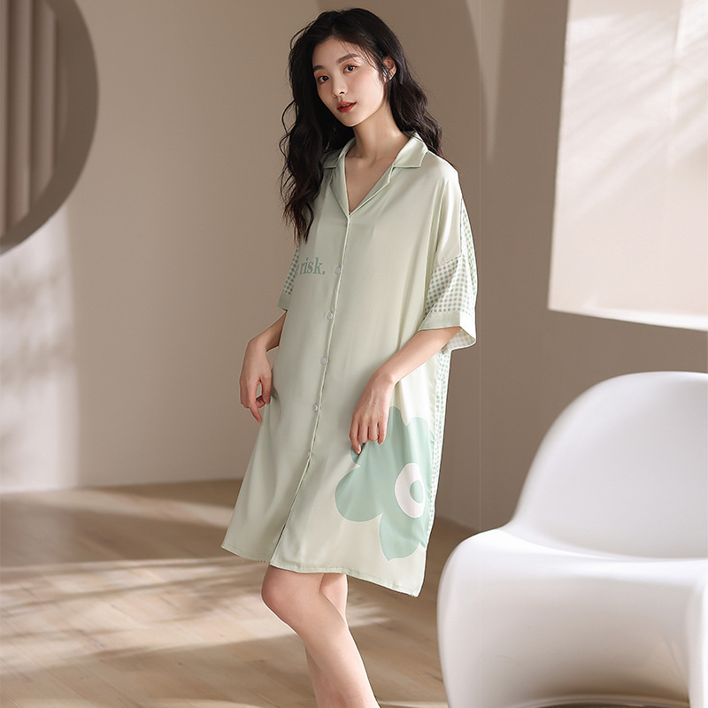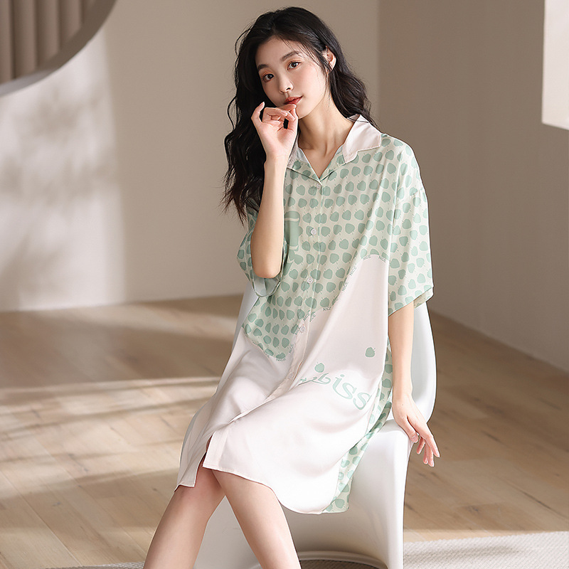 睡裙女夏天冰丝高个子衬衫睡衣女加长版175甜美新款家居服夏