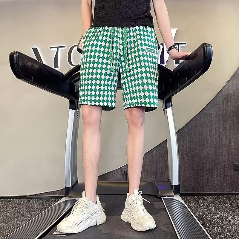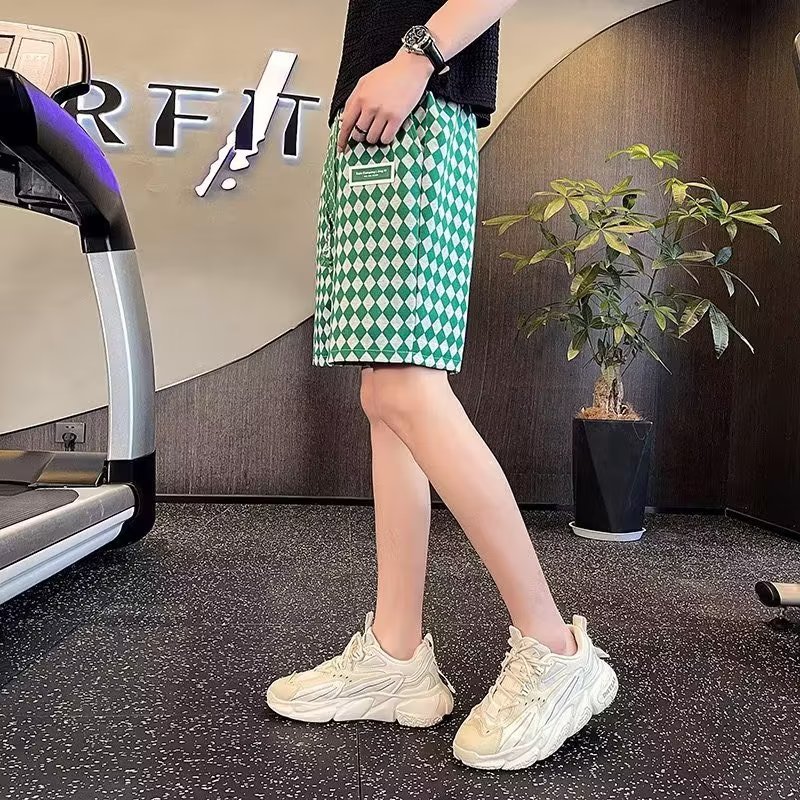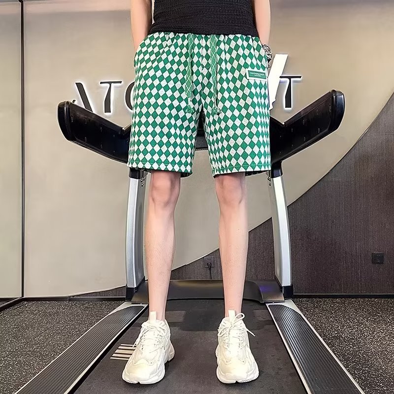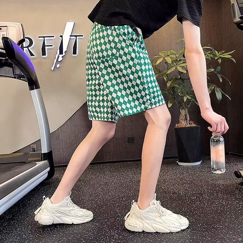格子短裤个性花色男时尚潮牌夏季青春流行运动裤潮休闲裤直筒型