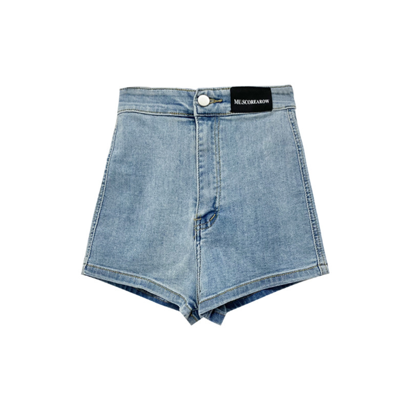 纯欲风紧身提臀牛仔短裤女设计感贴标阔腿高腰性感弹力超短热裤夏