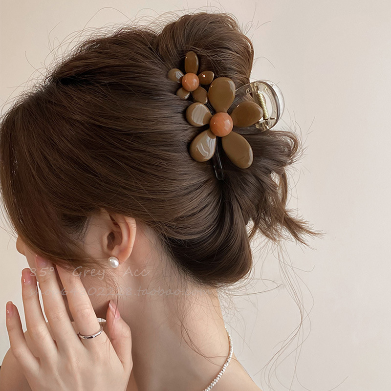 超仙气质韩系花朵发夹女夏新款爆款鲨鱼夹时尚高级感盘发抓夹