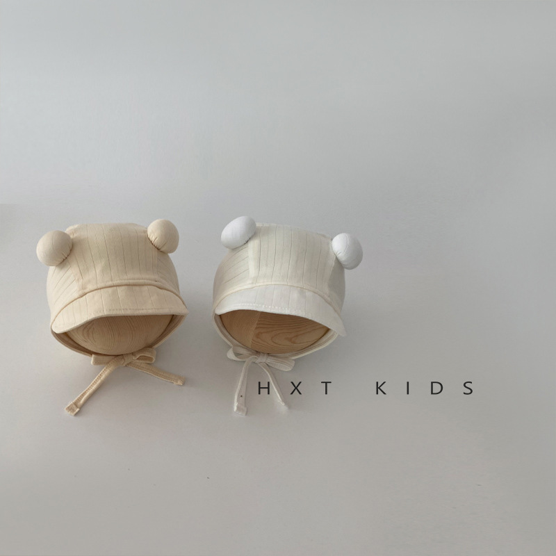 婴儿防晒帽春秋季可爱双球系带纯色宫廷帽小月龄宝宝夏天出游帽子