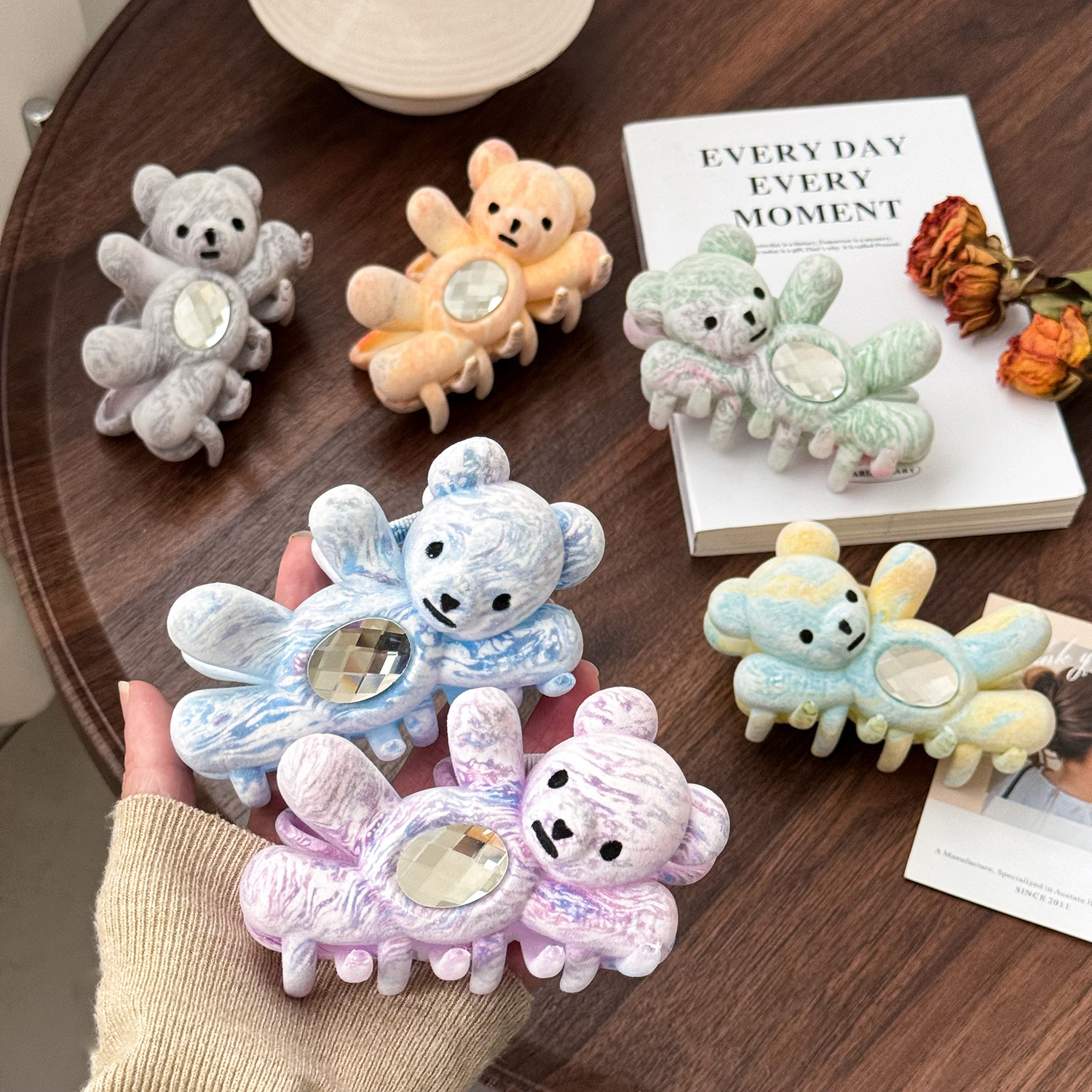 百搭可爱招手小熊发夹高级感镶钻鲨鱼夹子高马尾抓夹饰品