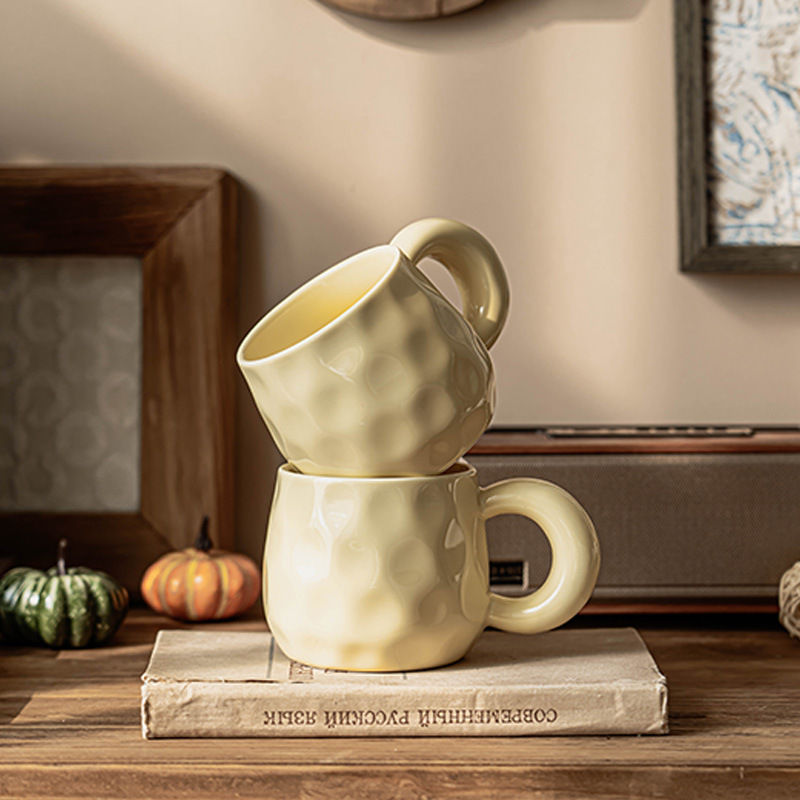奶油色马克杯高颜值陶瓷杯子批发纯色粗把杯家用水杯大容量咖啡杯