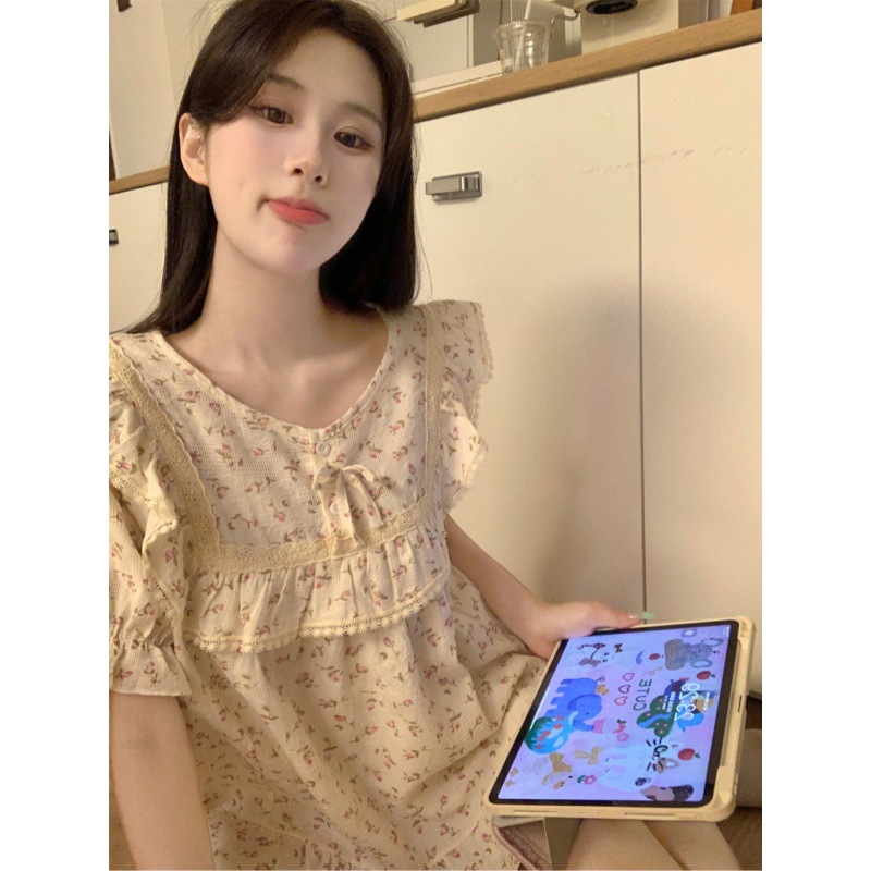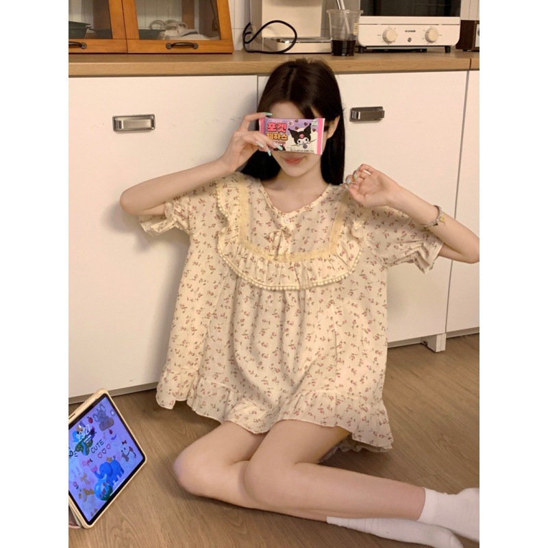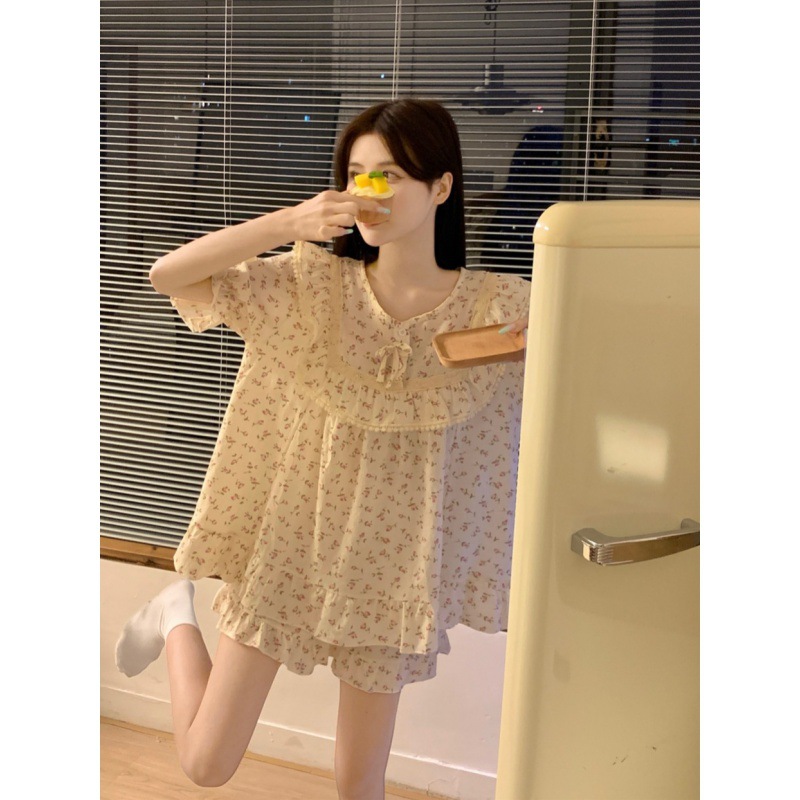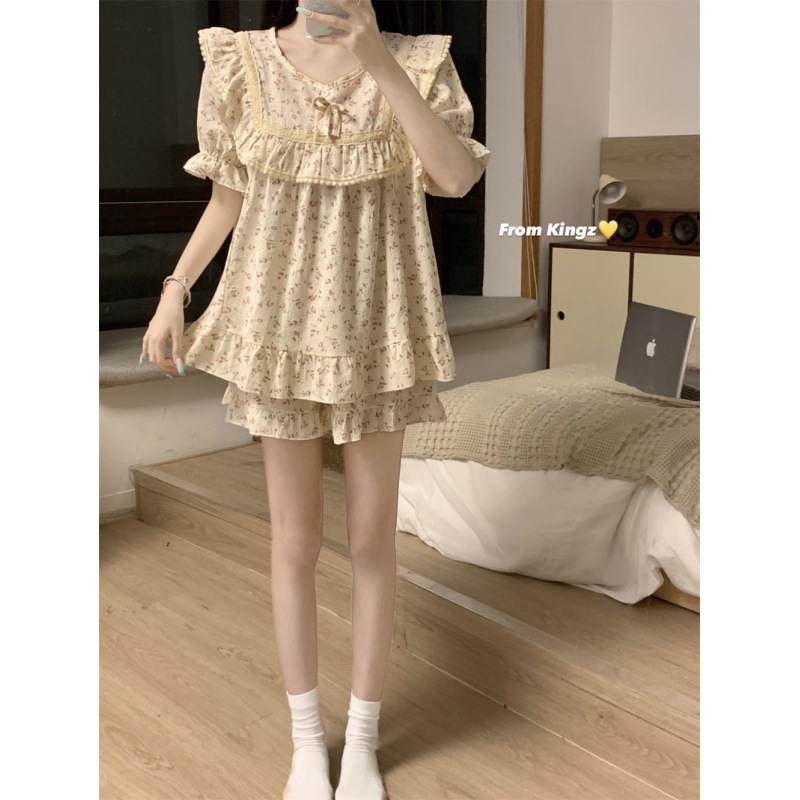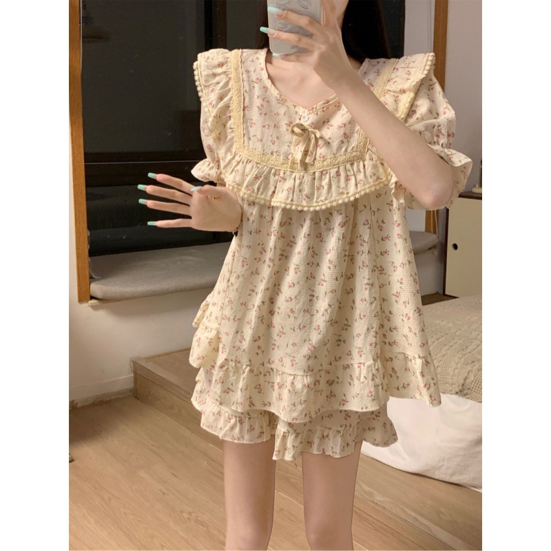 韩版甜美舒适提花全棉公主风少女可爱夏季短袖套装睡衣家居服