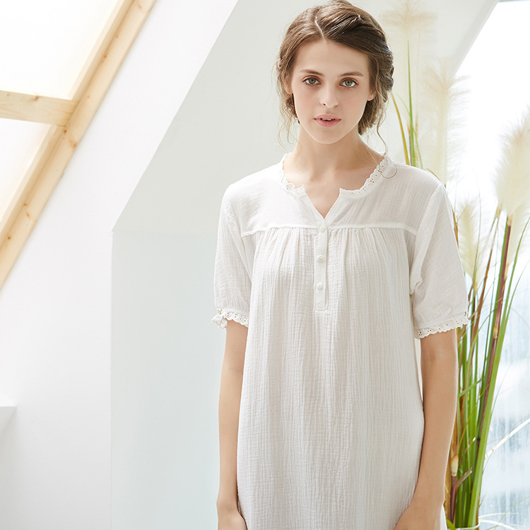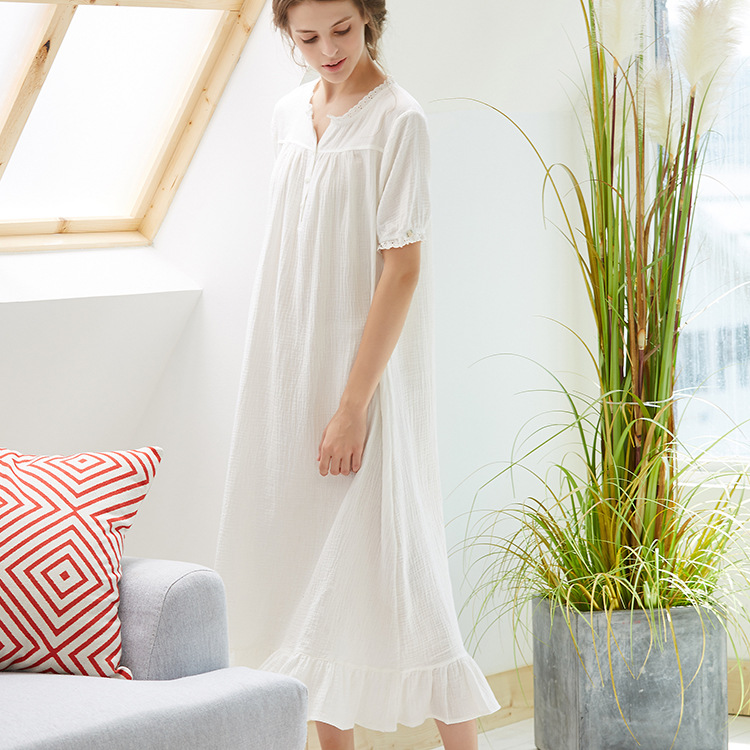棉纱布夏季女士睡衣可爱甜美女中长款睡裙韩版宽松纯棉家居服