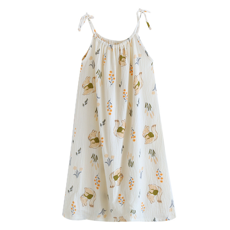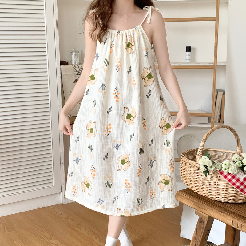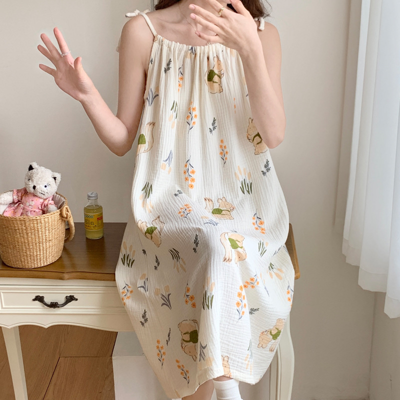 新款孕妇裙夏季薄款纯棉双层纱布月子服绉布睡裙家居裙吊带待产裙