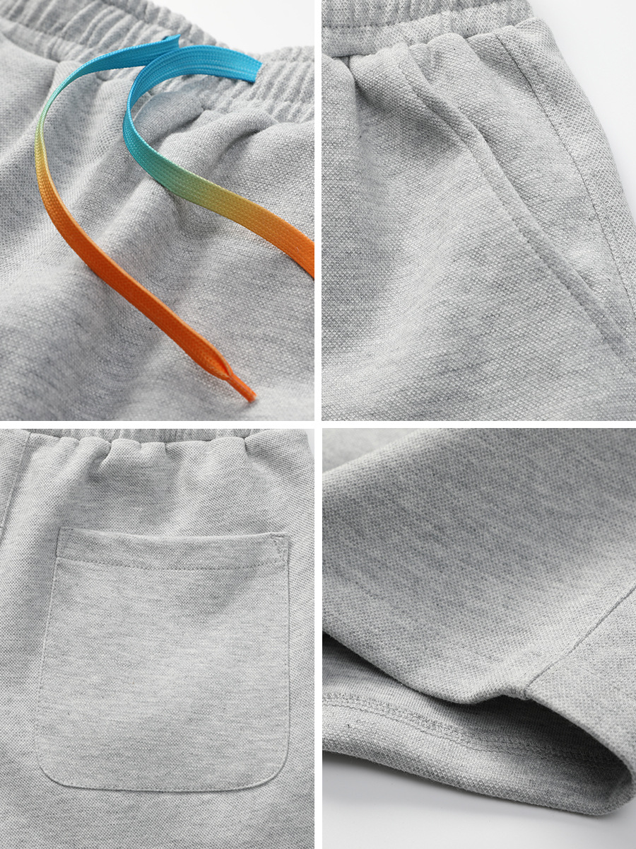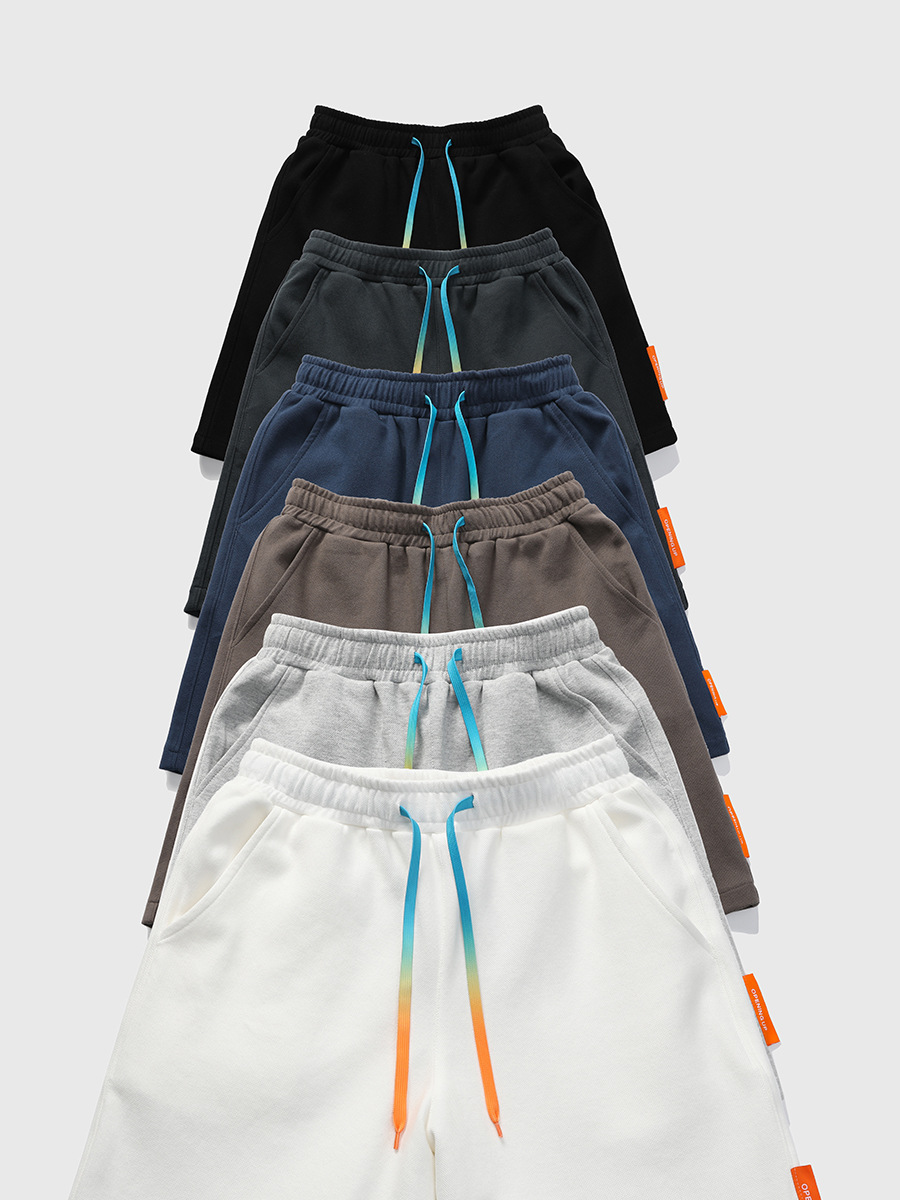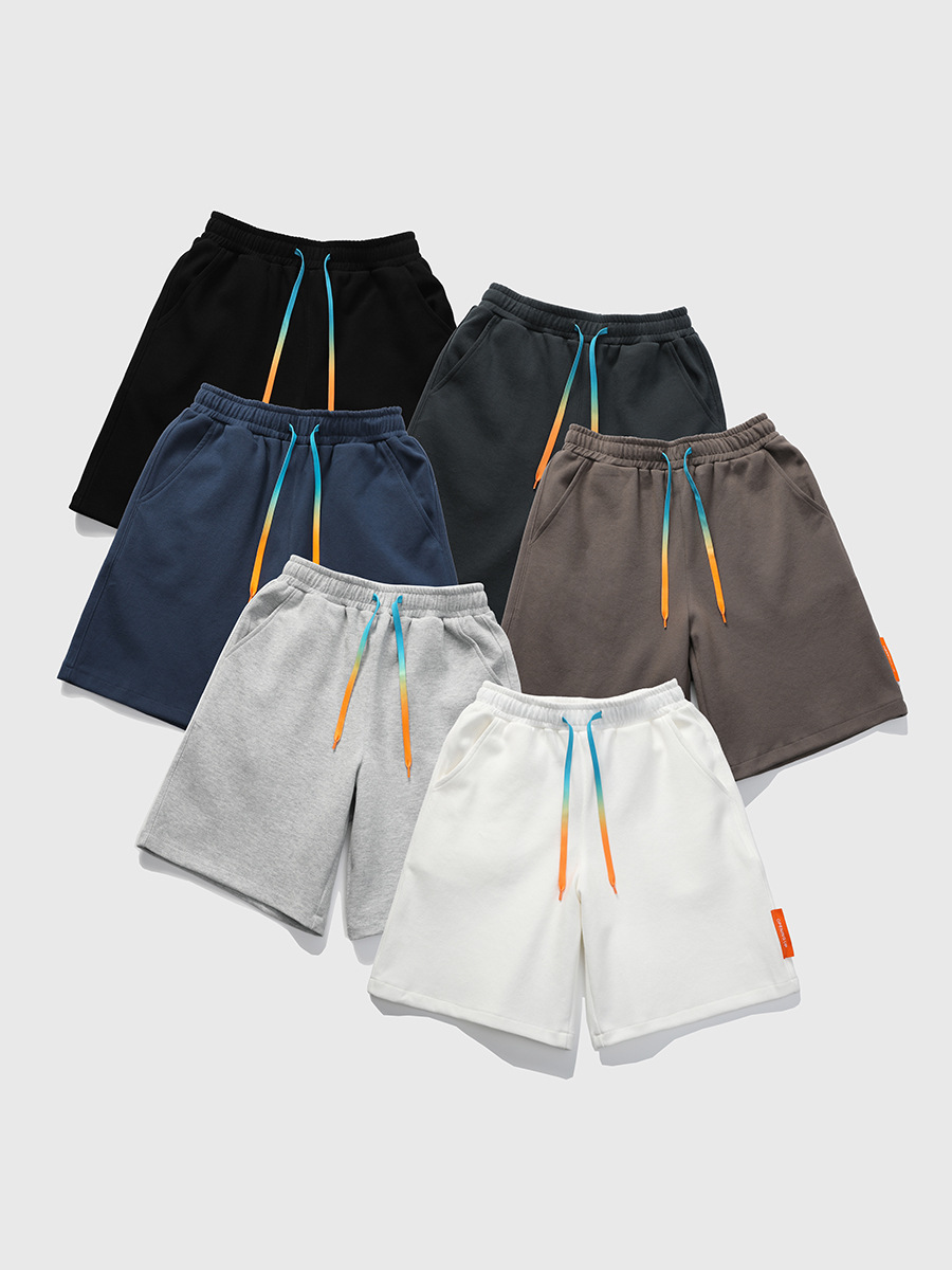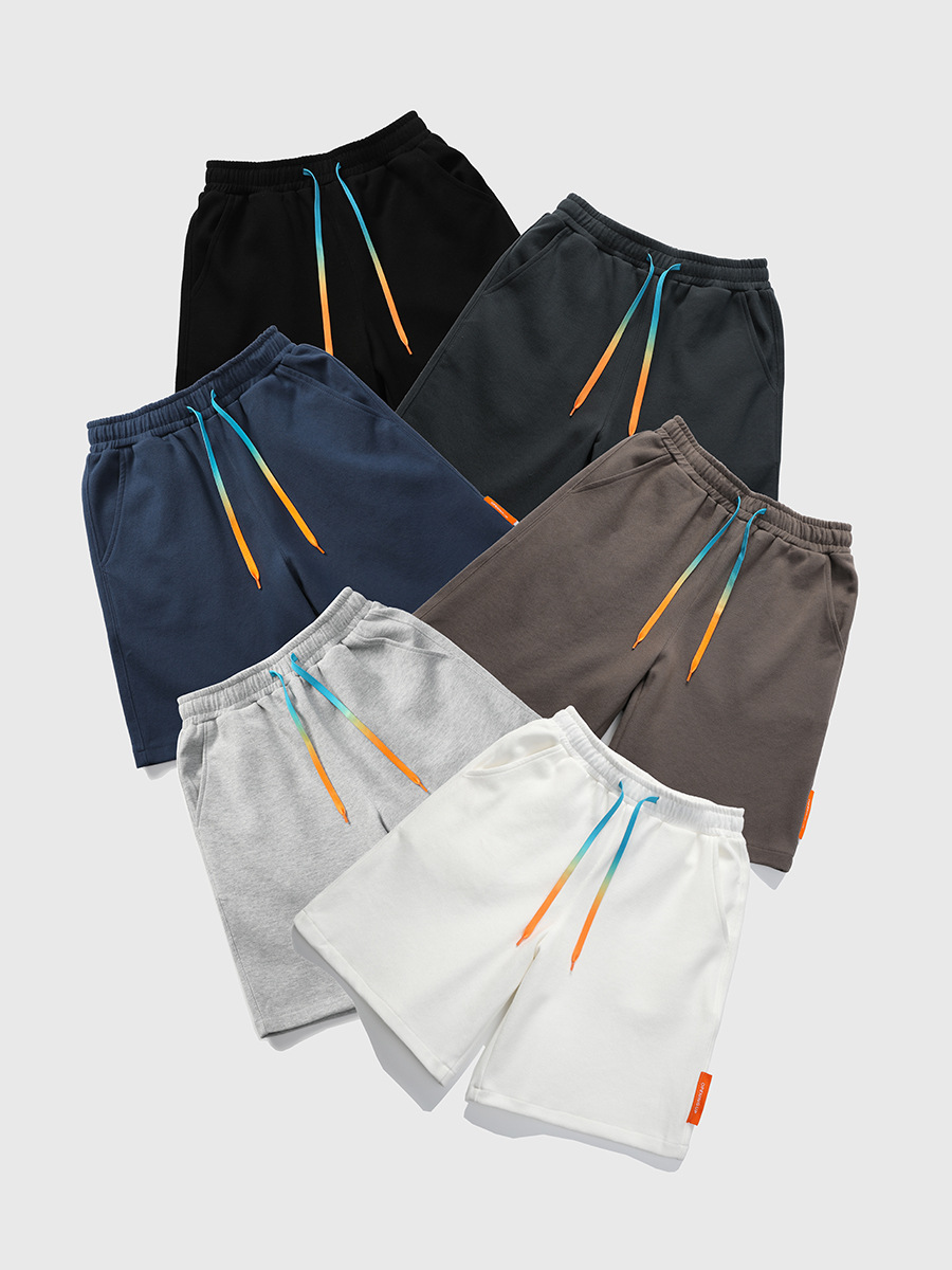 320g珠地彩带五分裤男士夏季日系纯色宽松大码外穿运动休闲短裤男