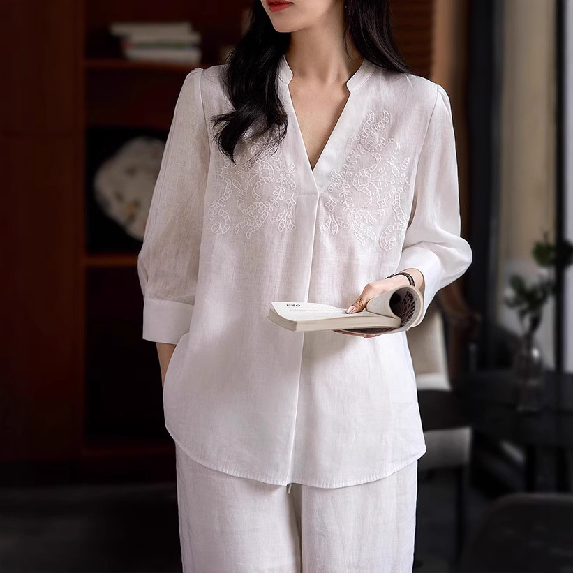 2025年春夏季 清透质感 显瘦透气亚麻衬衫上衣女气质新款