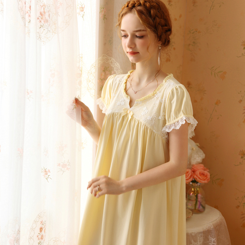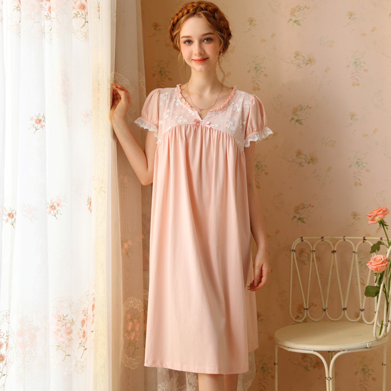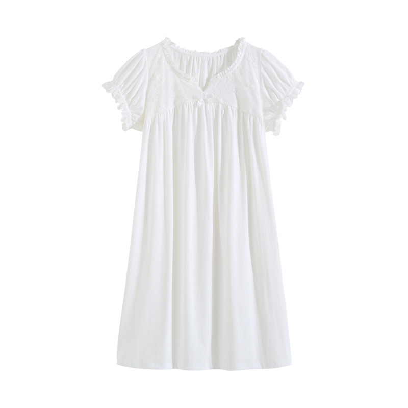 宫廷睡裙春夏短袖棉甜美少女公主睡衣宽松短裙新款法式复古可外穿