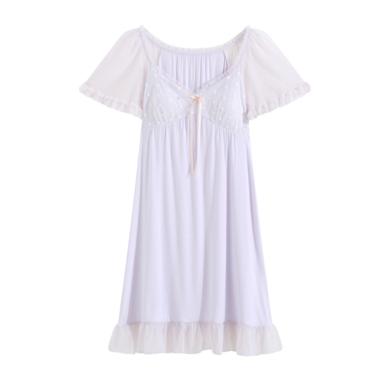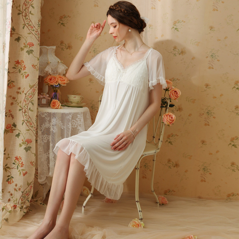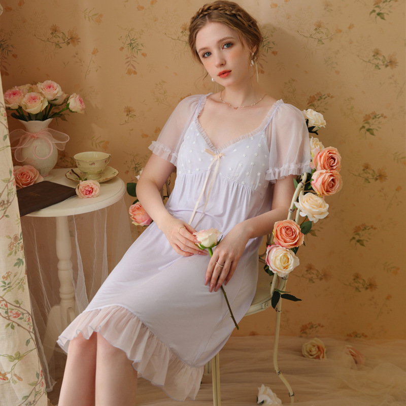 公主睡裙女春夏短袖网红纯欲宫廷风性感甜美薄款睡衣连衣裙带胸垫