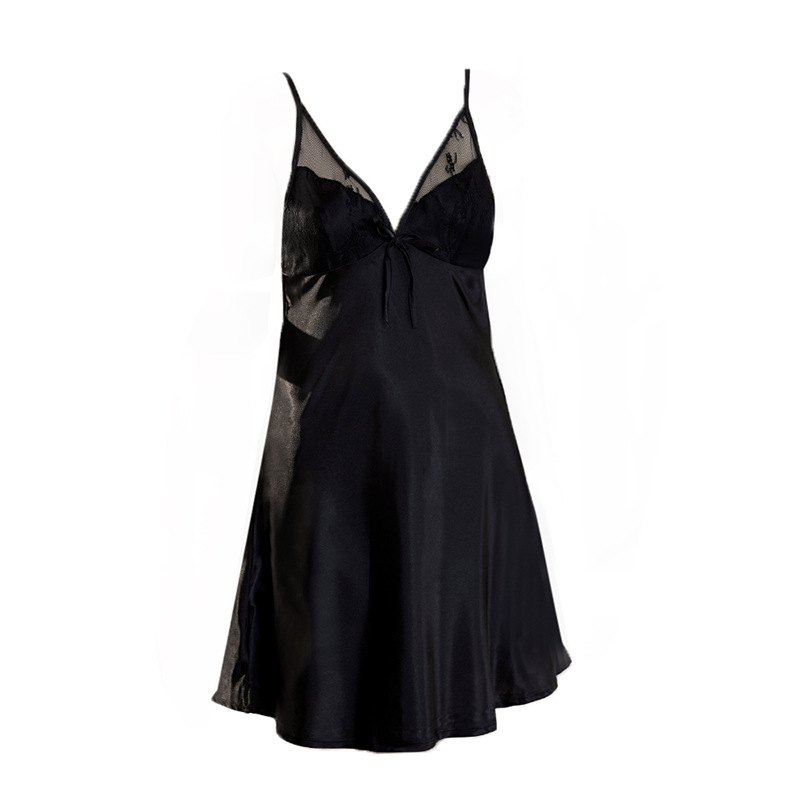 性感吊带情趣睡衣胸前透视诱惑冰丝滑蕾丝睡裙女露背