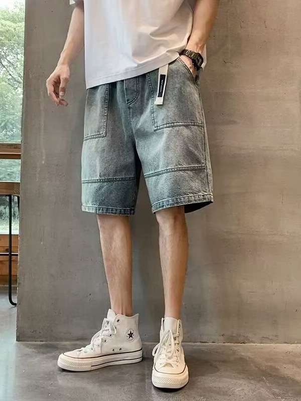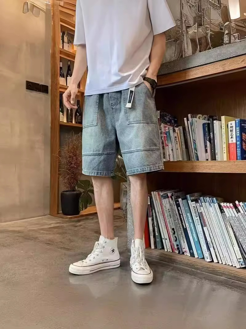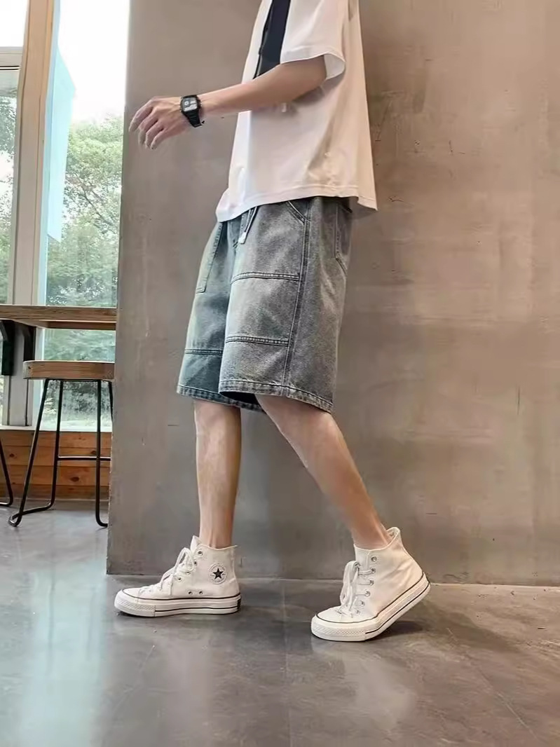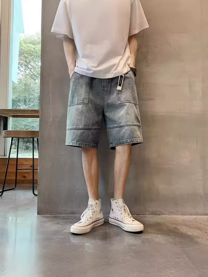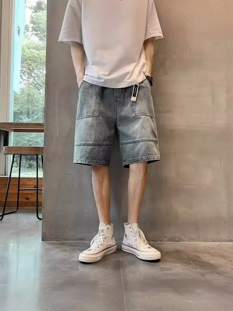 复古牛仔裤男款夏季直筒宽松阔腿美式高街百搭休闲五分裤