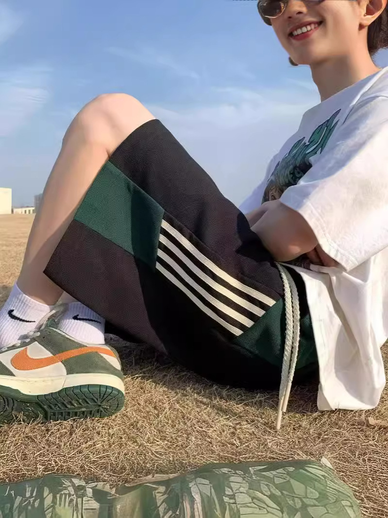 美式短裤男夏季篮球五分中裤青少年透气潮牌宽松休闲沙滩运动裤子
