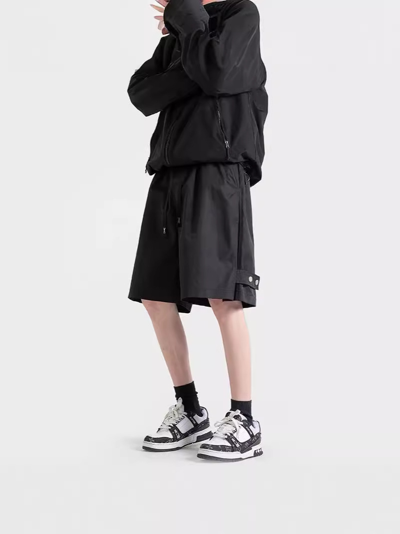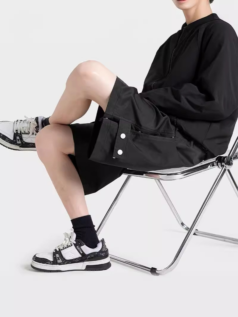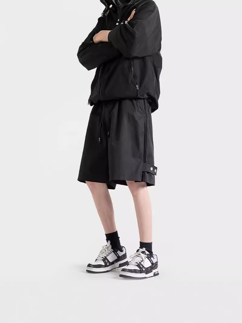 美式机能排扣短裤男运动大裤衩速干潮牌胖子大码宽松沙滩五分裤子