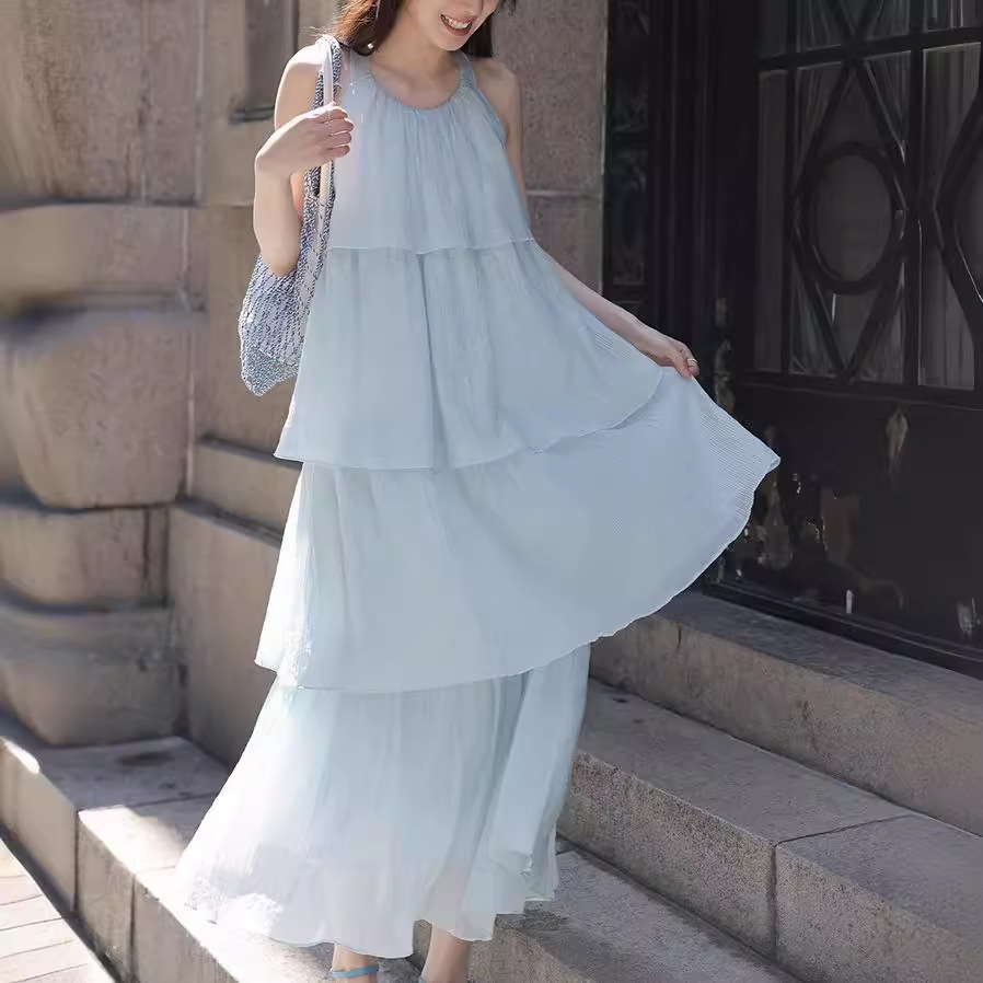 1313多层重工裙摆背心裙!BABY蓝天丝吊带裙夏女蛋糕连衣长裙