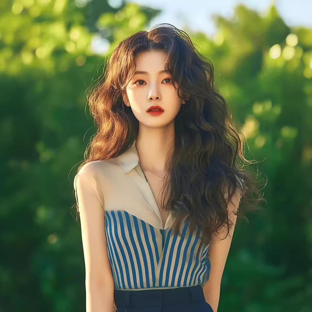 今年流行漂亮小衫独特别致上衣蓝色条纹拼接短袖雪纺衬衫夏季女装