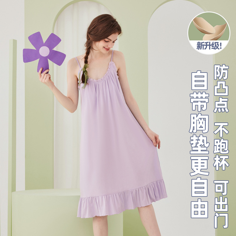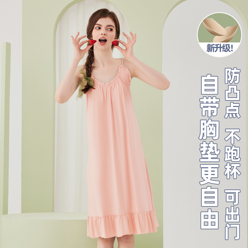 新款带胸垫吊带睡裙女夏季高级感凉感性感睡衣女士家居服