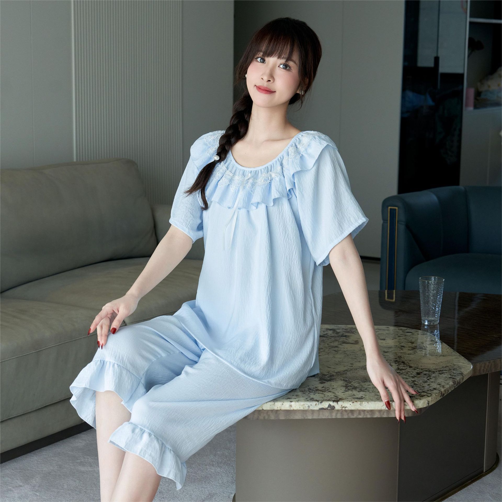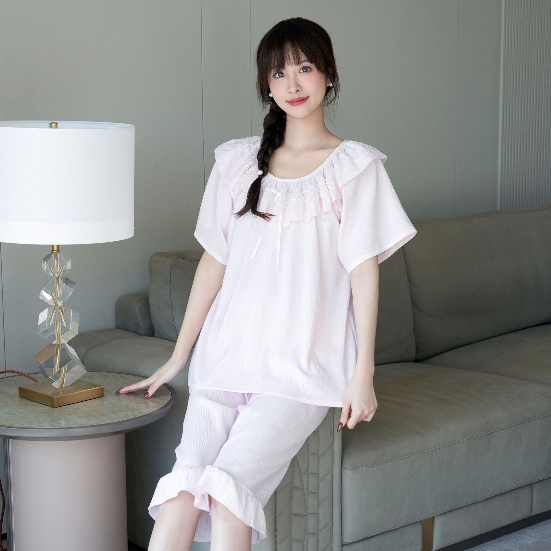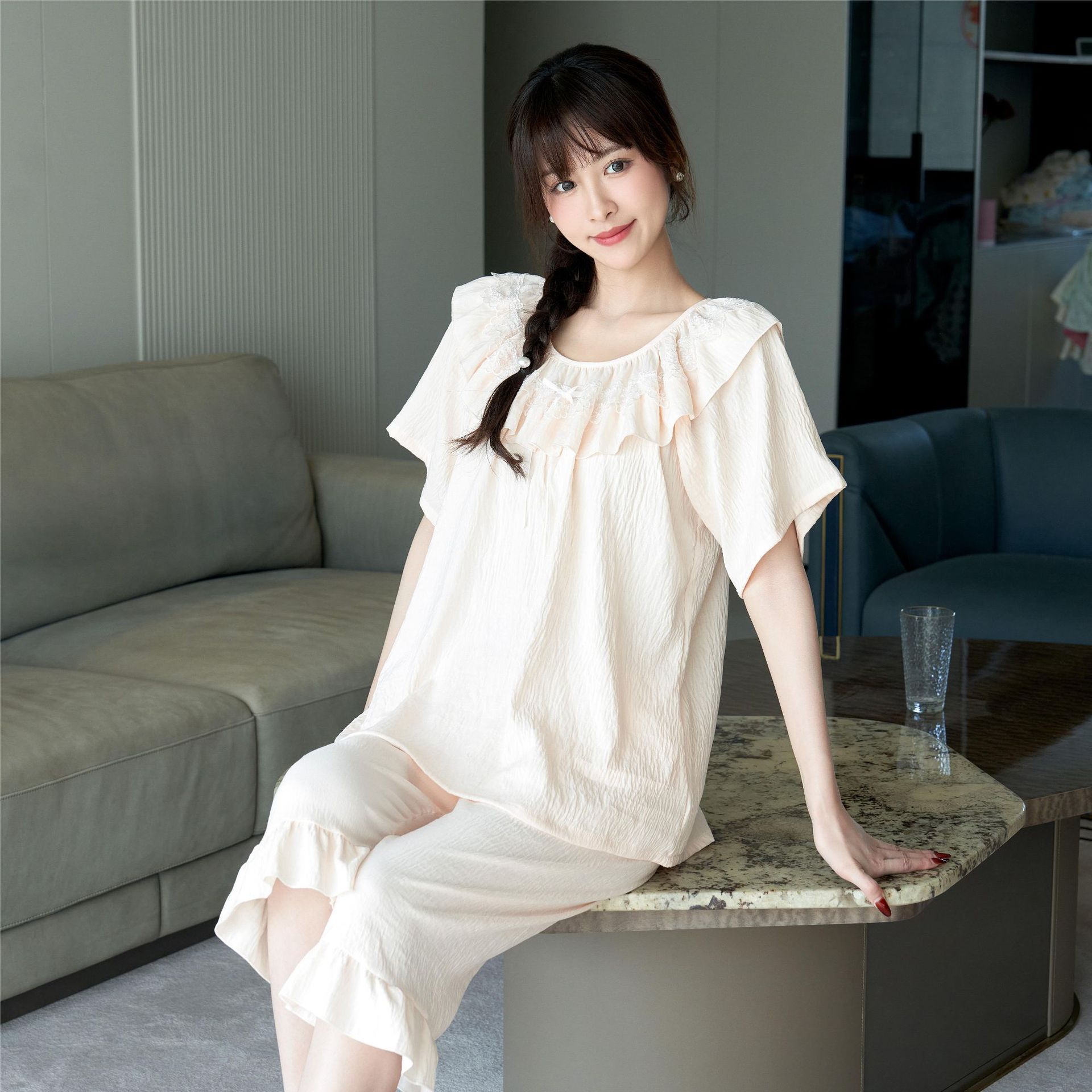 睡衣女夏季带胸垫蕾丝花边套装小红书推荐法式宫廷风家居服可外穿