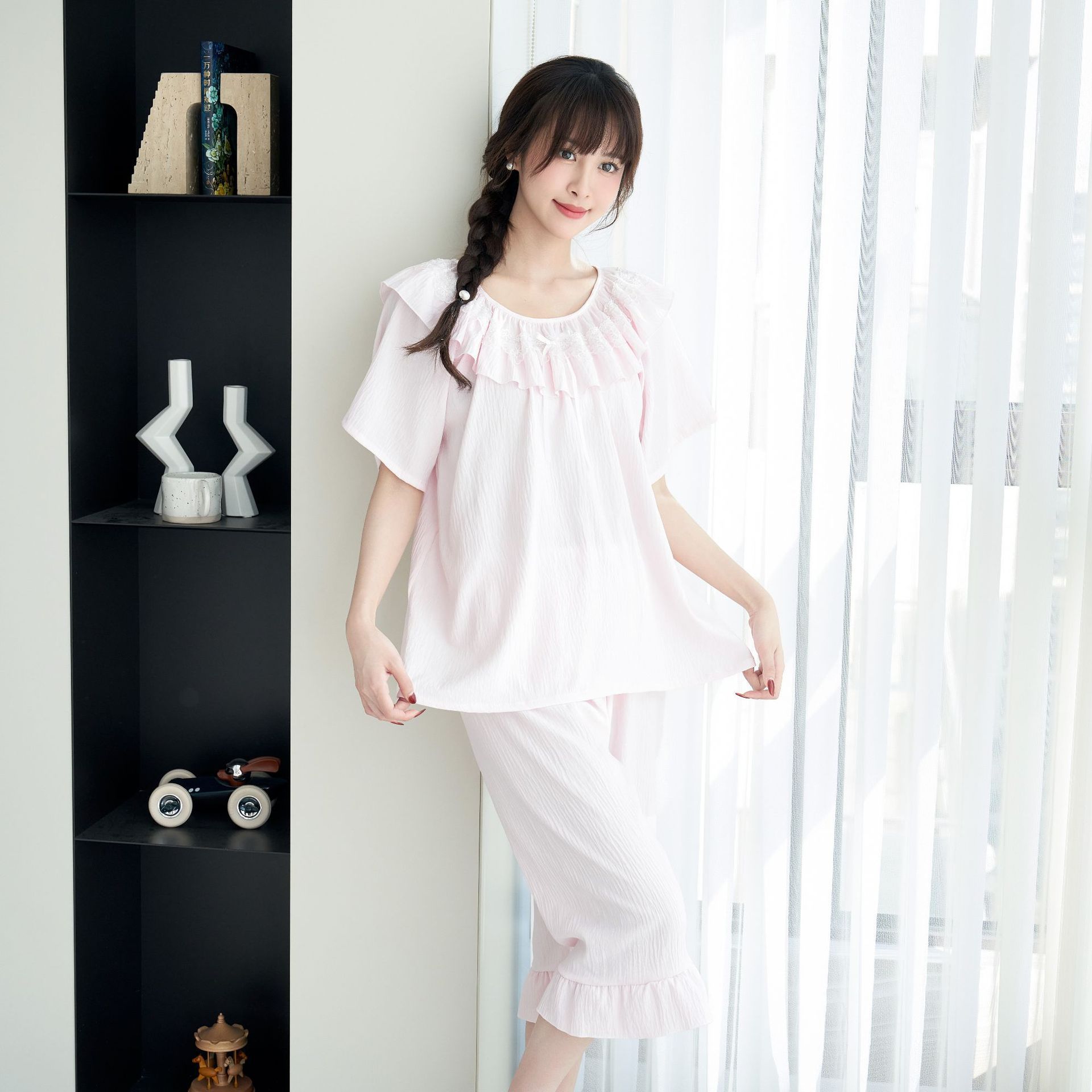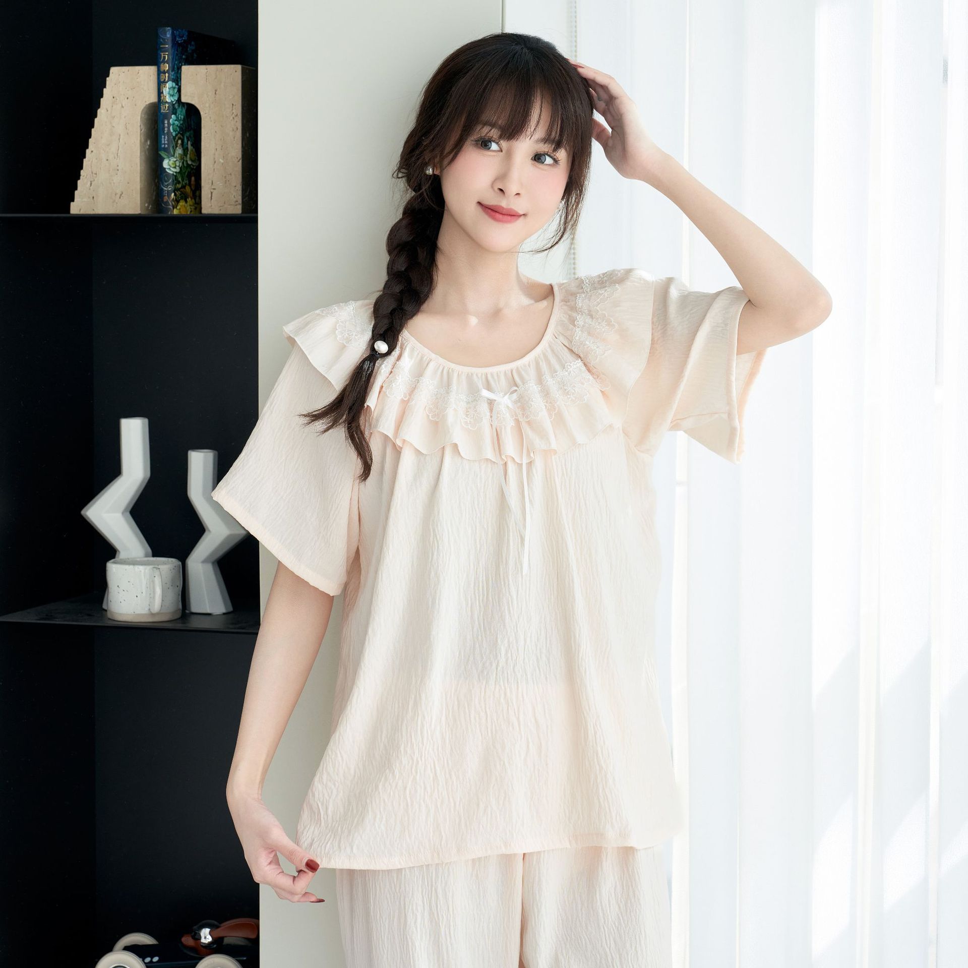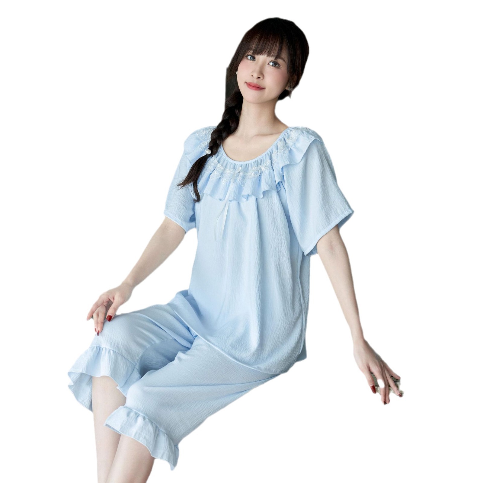 睡衣女夏季带胸垫蕾丝花边套装小红书推荐法式宫廷风家居服可外穿