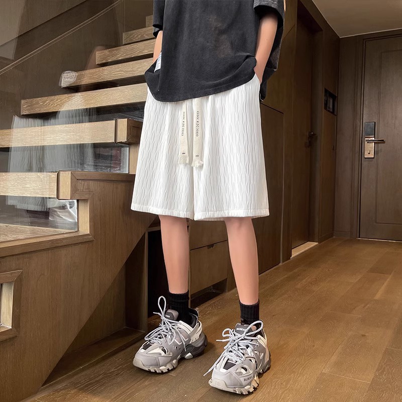 短裤男夏季薄款速干褶皱冰丝五分裤美式百搭潮牌宽松休闲运动裤男
