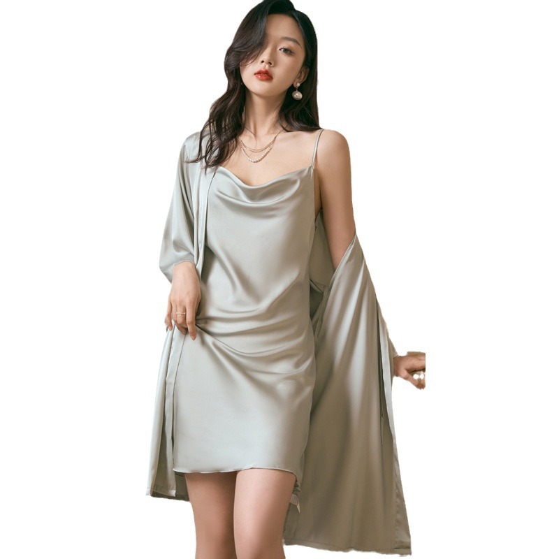 新款冰丝性感吊带睡衣女式连体裙夏季薄款纯欲睡裙荡领套装家居服