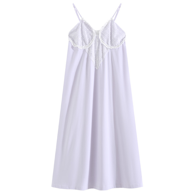 吊带睡裙女夏季法式性感蕾丝纯欲长款睡衣裙带胸垫可外穿家居服棉