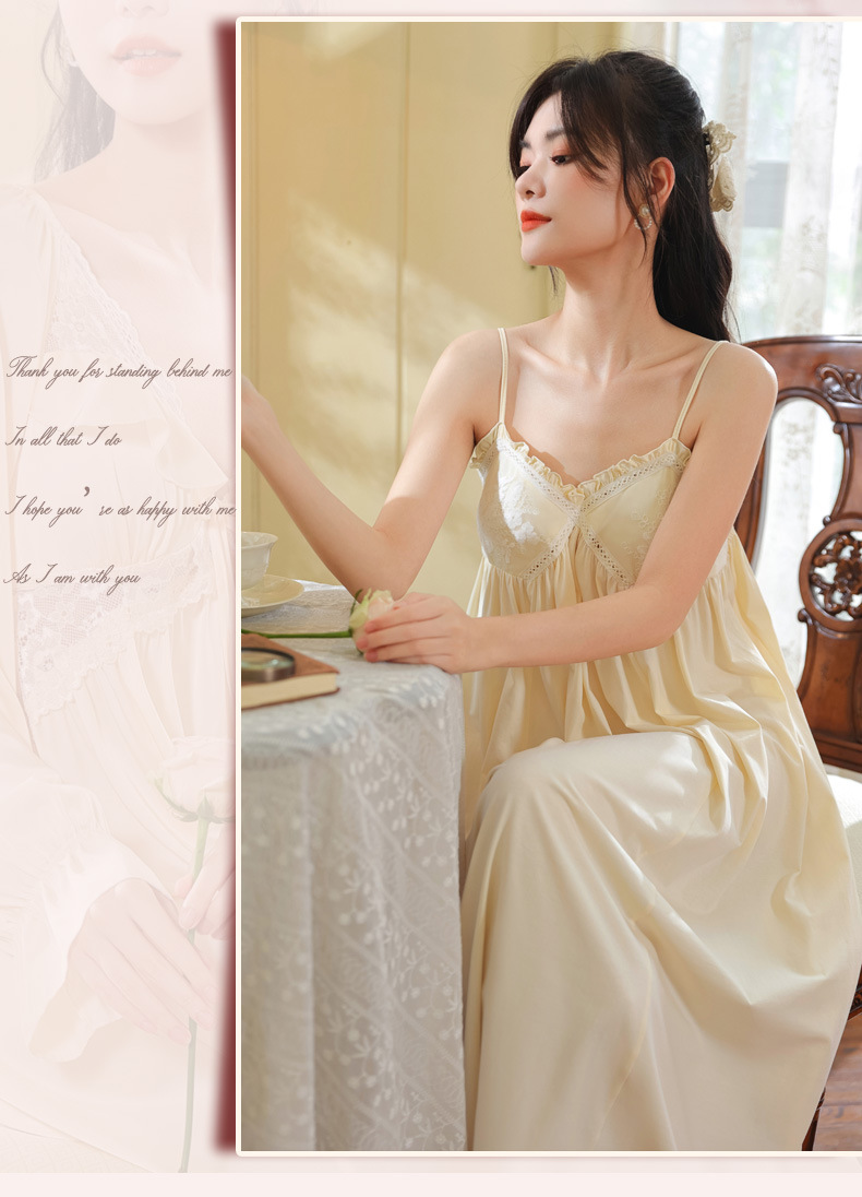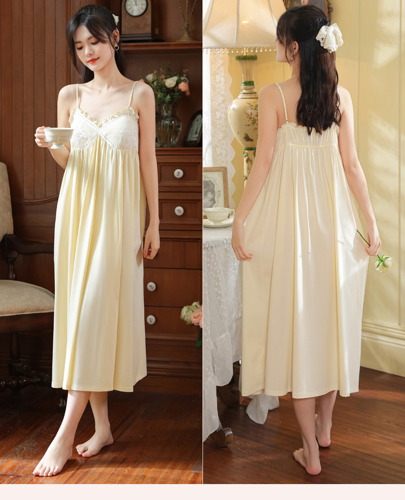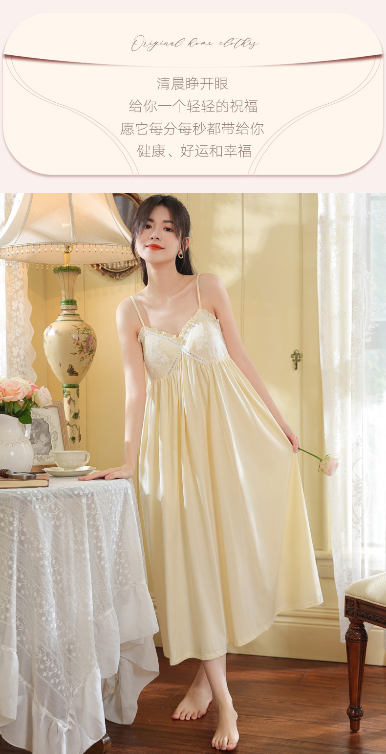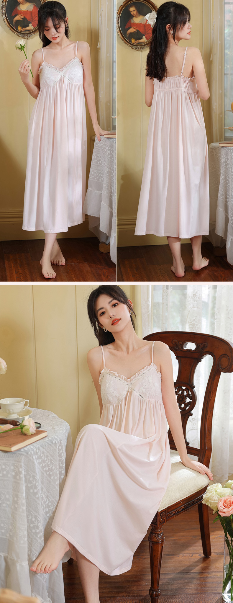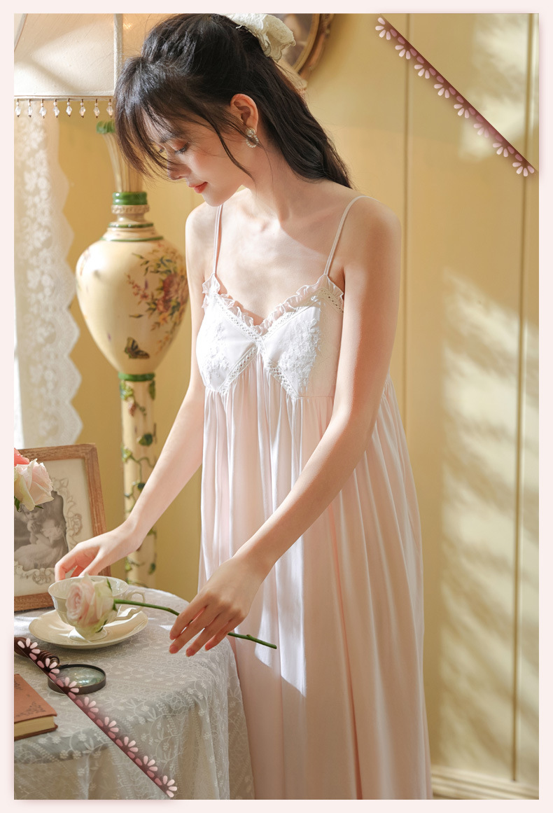 吊带睡裙女夏性感蕾丝长款睡衣法式宽松胸垫吊带裙可外穿家居服棉