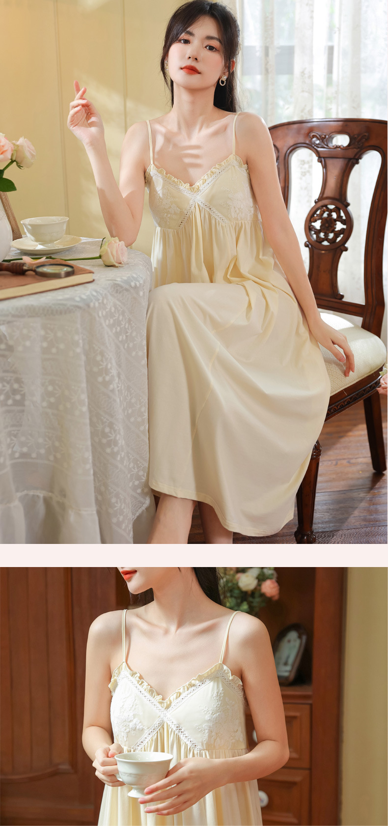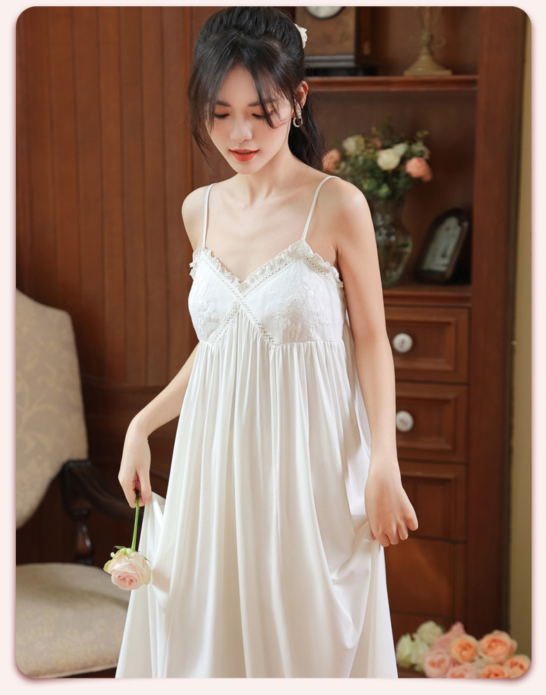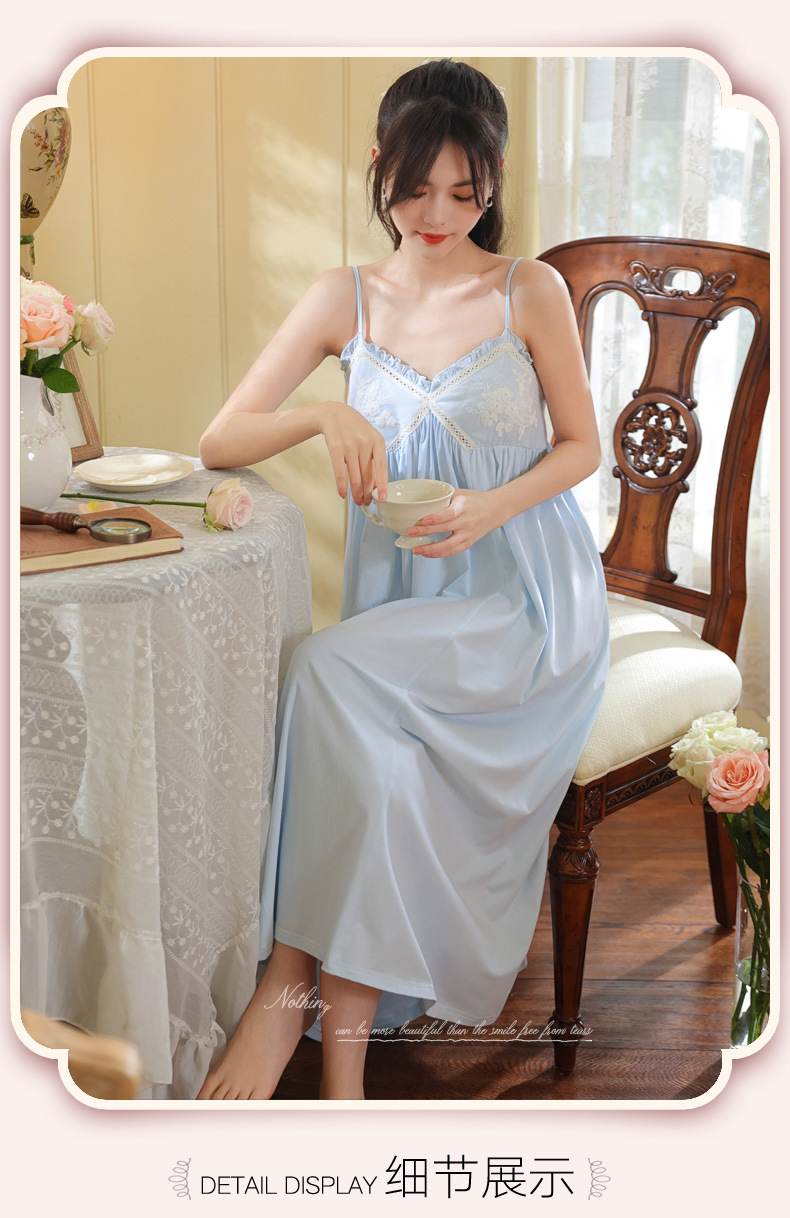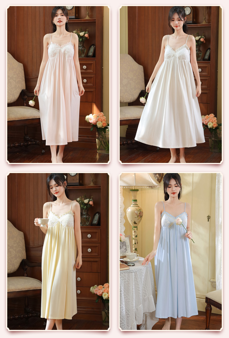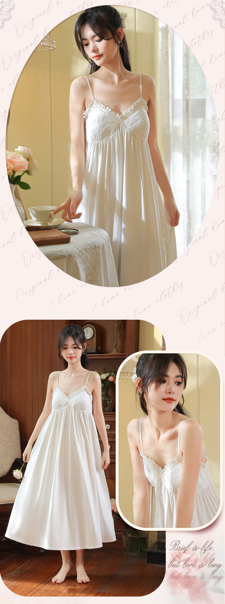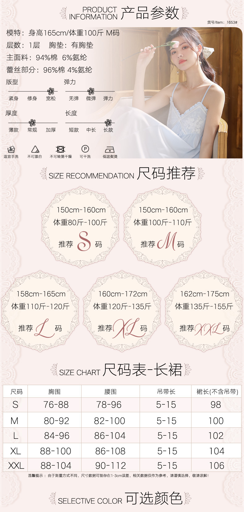 吊带睡裙女夏性感蕾丝长款睡衣法式宽松胸垫吊带裙可外穿家居服棉