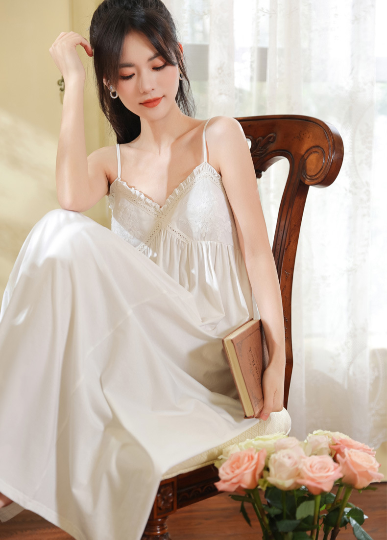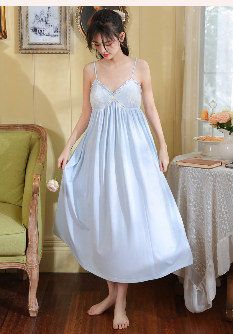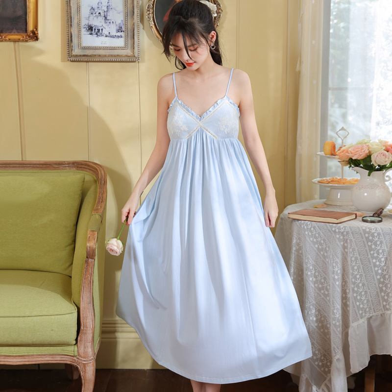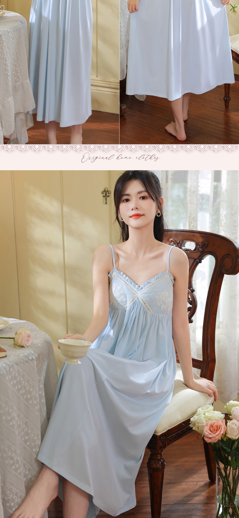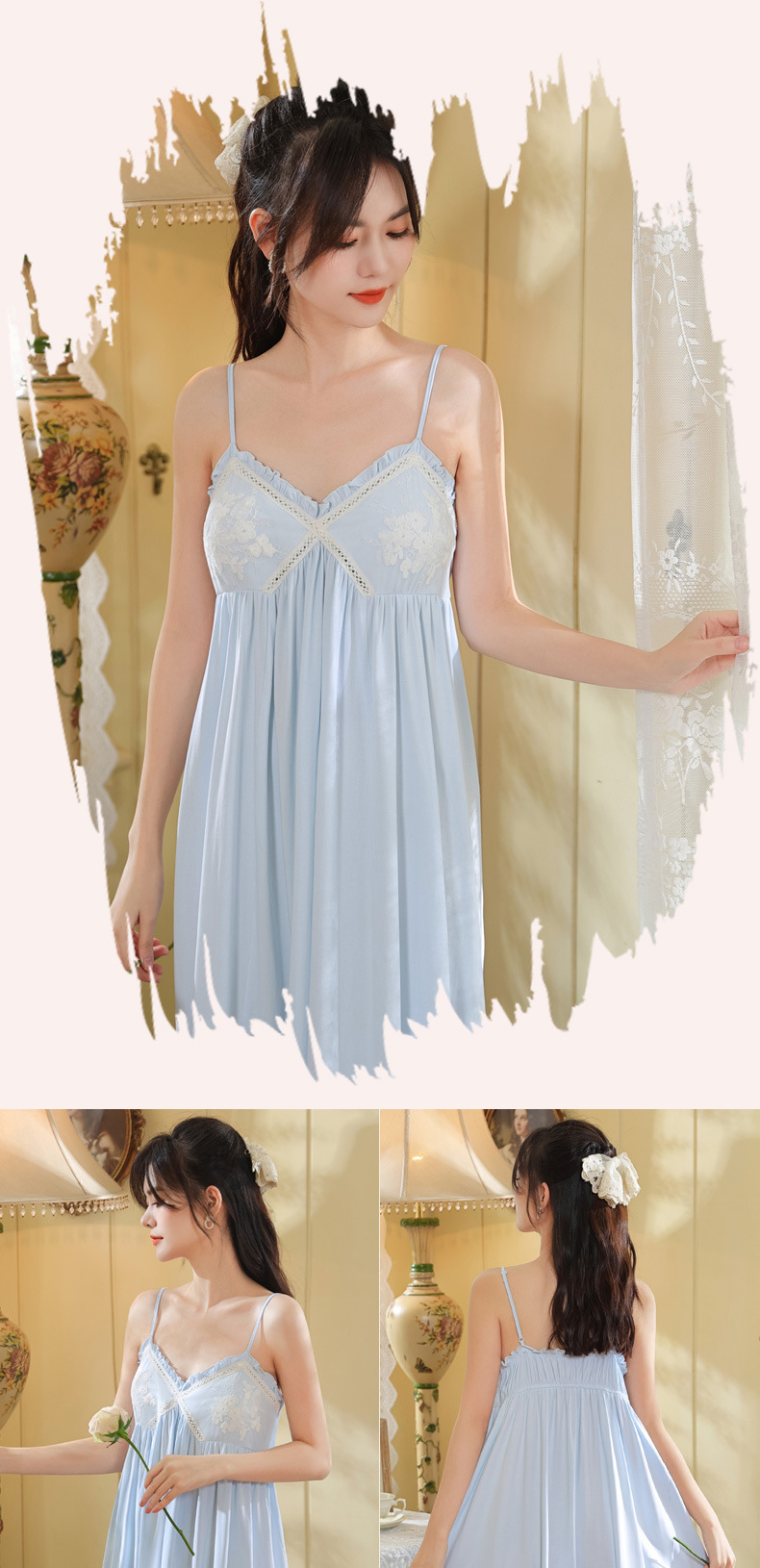 吊带睡裙女夏性感蕾丝长款睡衣法式宽松胸垫吊带裙可外穿家居服棉