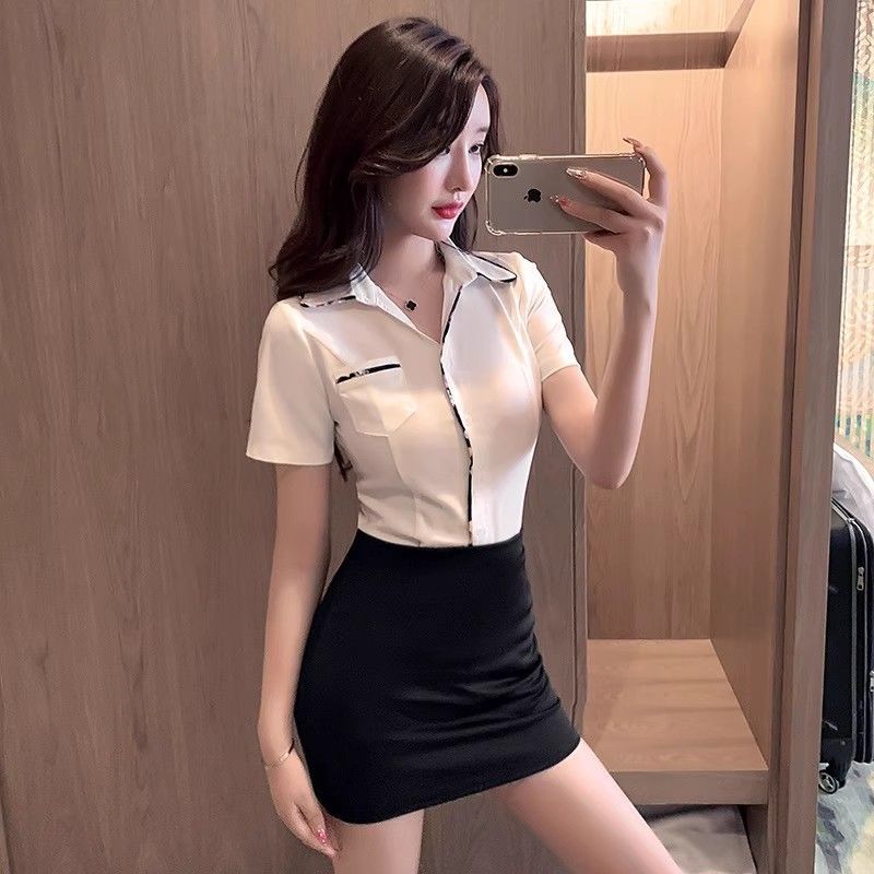 足浴技师工作服女夜场性感职业女装酒店会所桑拿按摩工衣衬衫套装