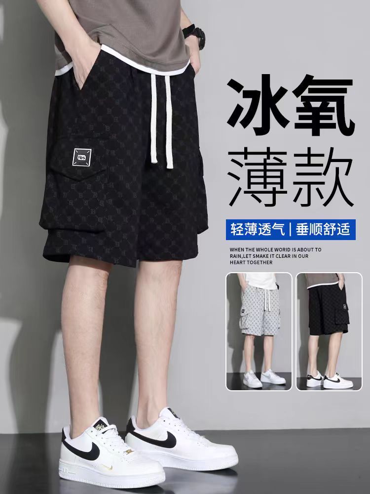 美式高街速干格子短裤男夏季薄款宽松休闲运动裤子潮牌外穿五分裤