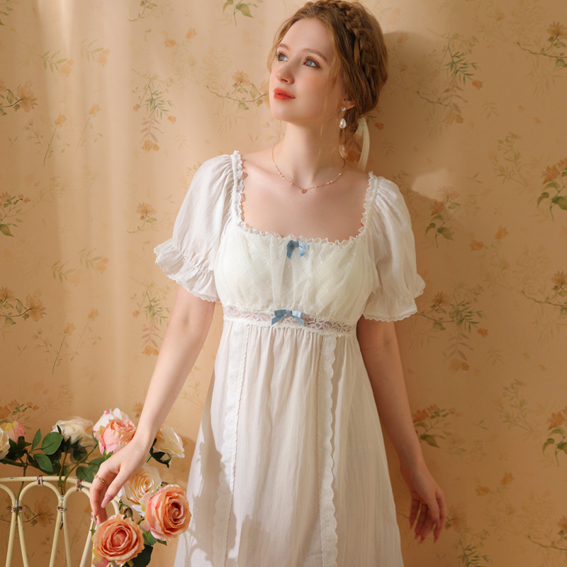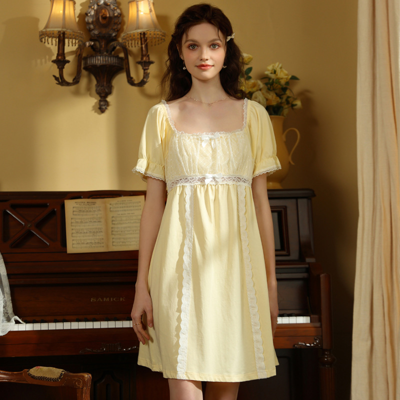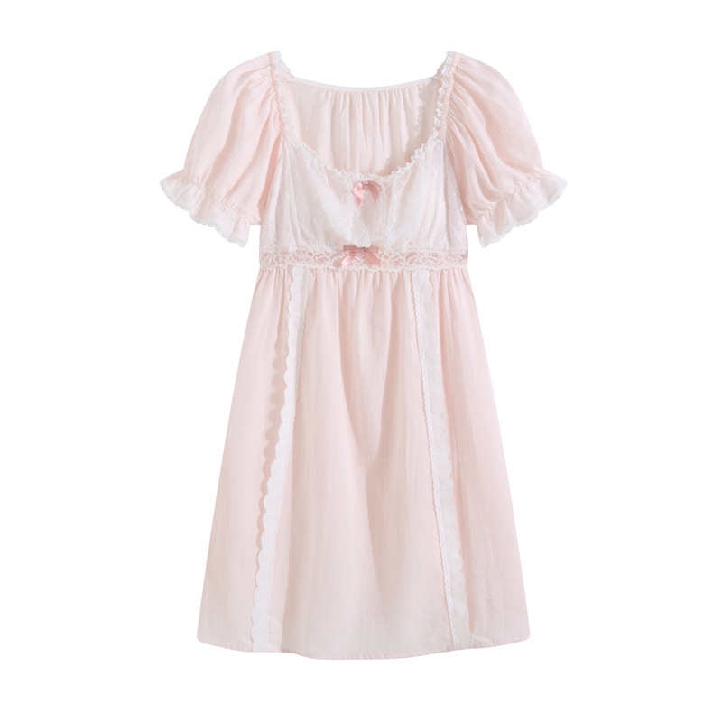 公主睡裙女夏季短袖蕾丝甜美少女棉睡衣新款宫廷法式短裙可爱纯欲