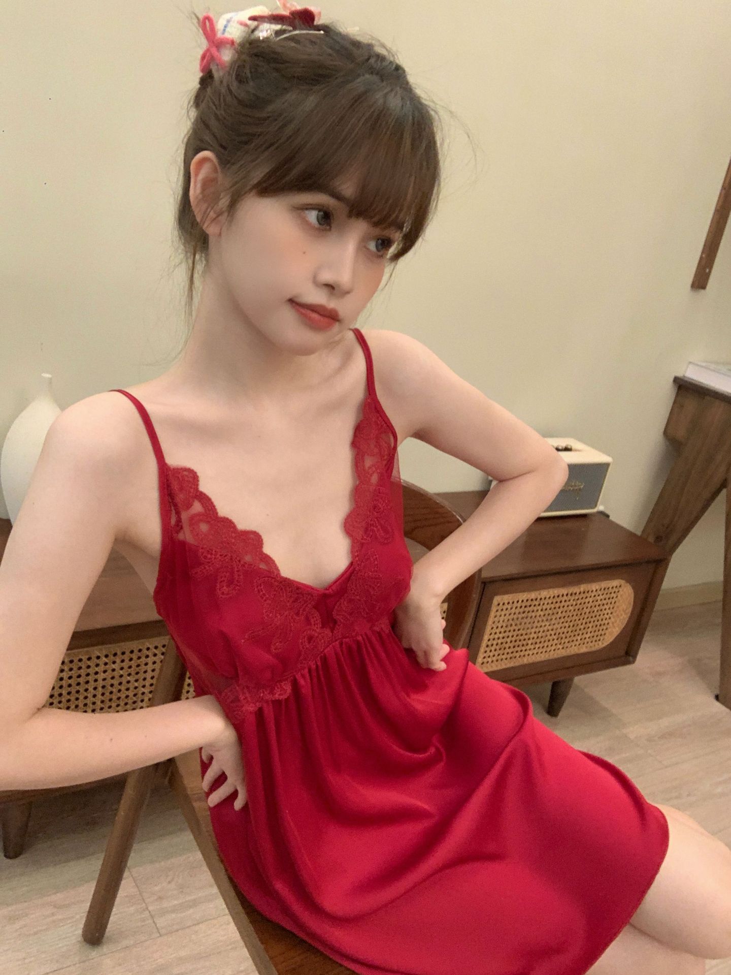性感吊带睡裙女夏季冰丝法式带胸垫睡衣高级感日系少女家居服纯欲