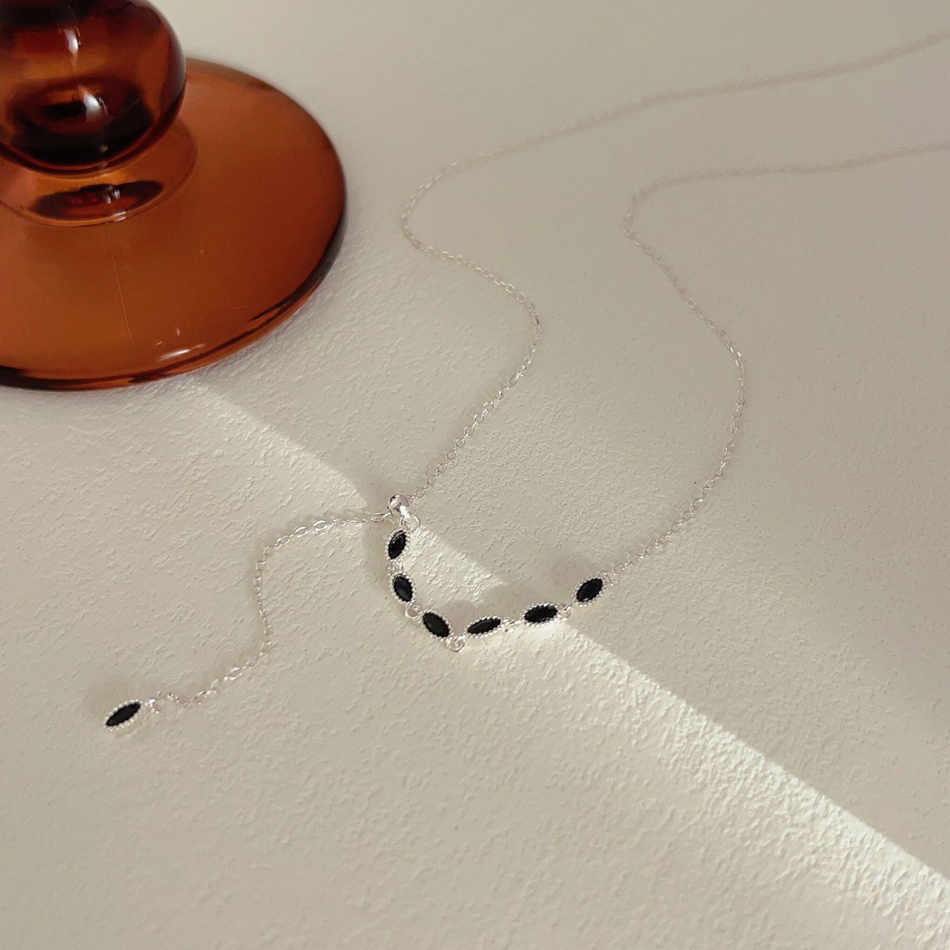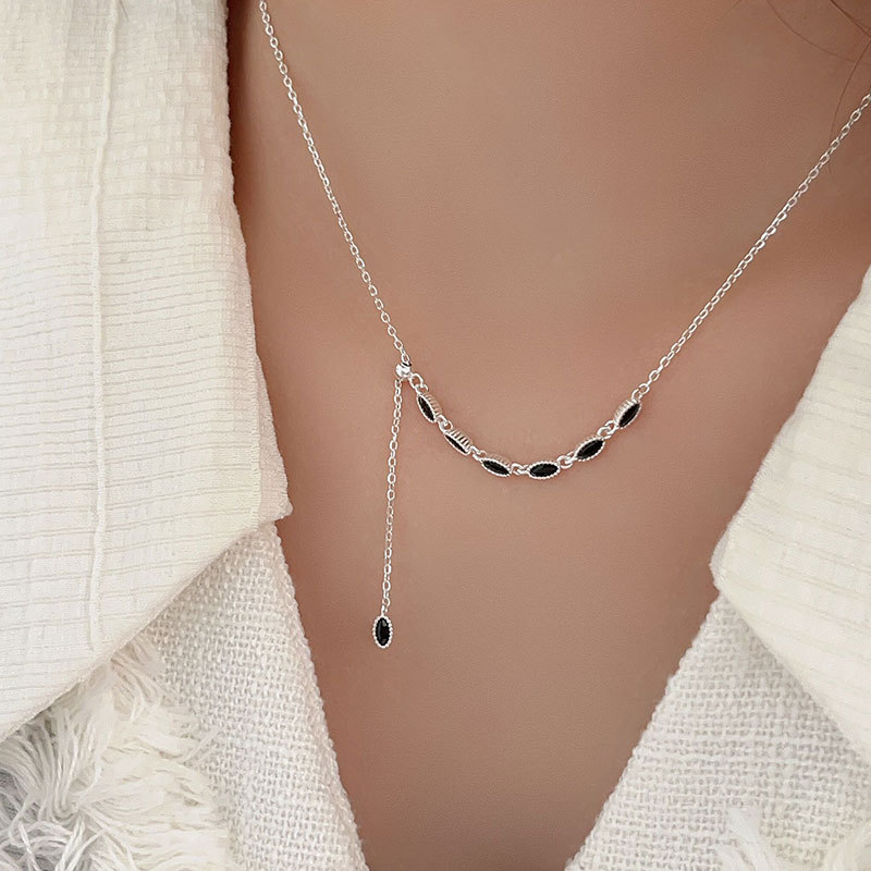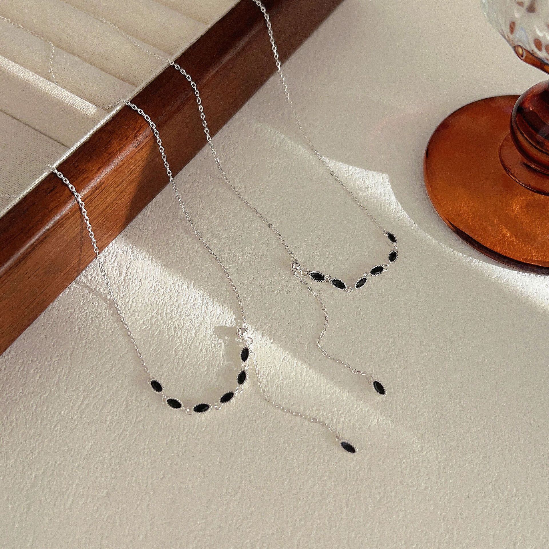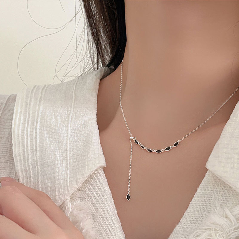 s925纯银黑锆石流苏项链女韩国档口货小众设计气质锁骨颈链