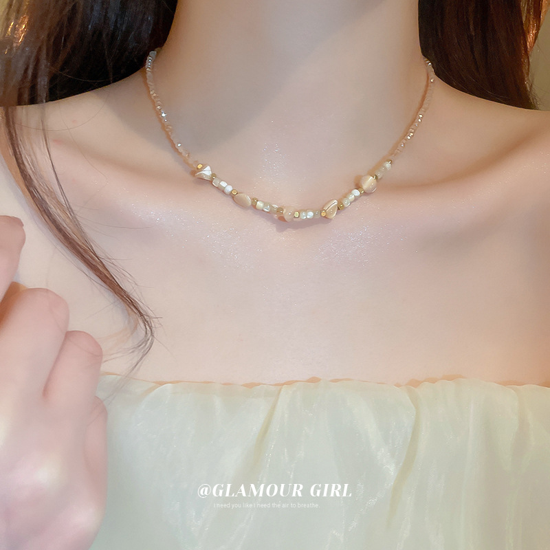 不规则贝壳水晶串珠项链复古时尚百搭锁骨链小众气质高级感颈链女
