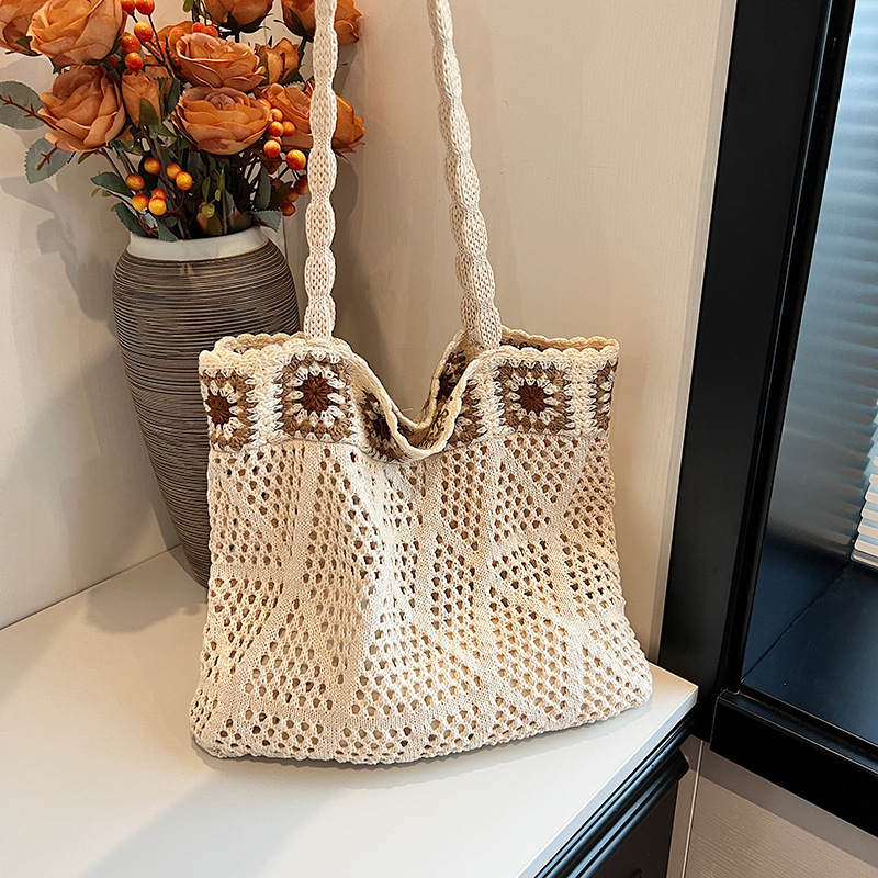 单肩包女生高级感小众夏季百搭针织手拎包学生新款设计托特包