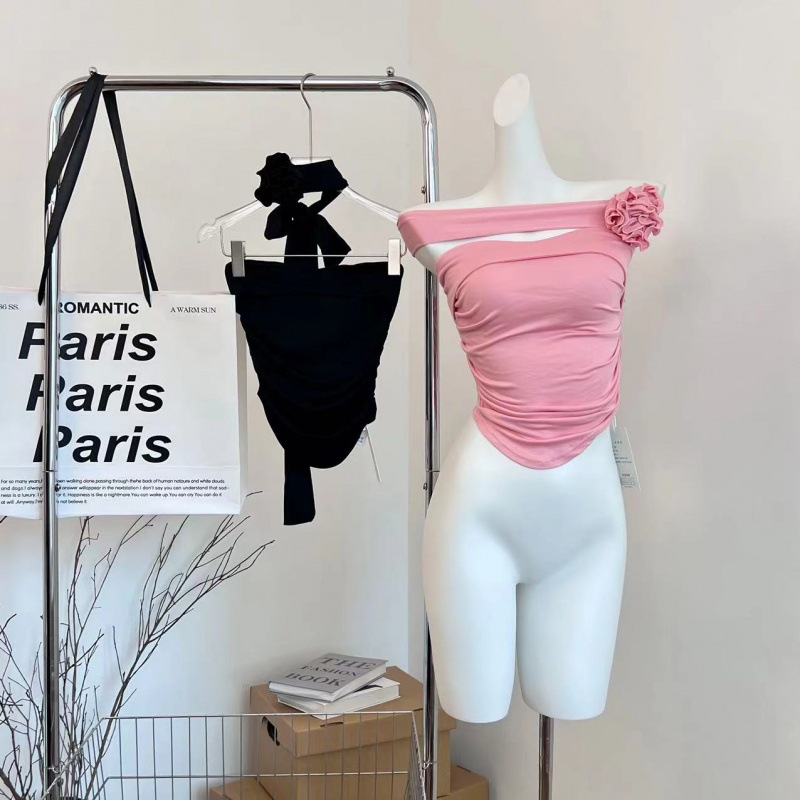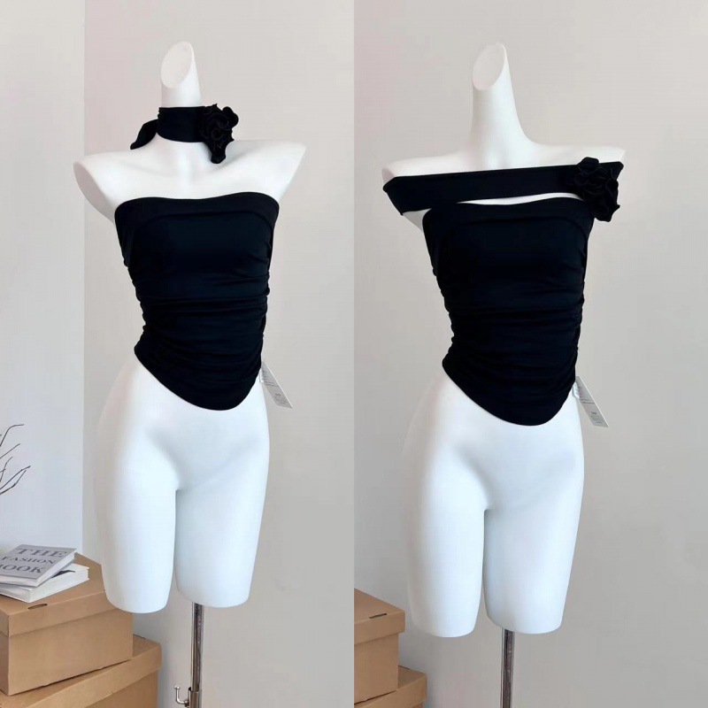 一字肩抹胸女纯欲辣妹短款修身收腰bm风上衣