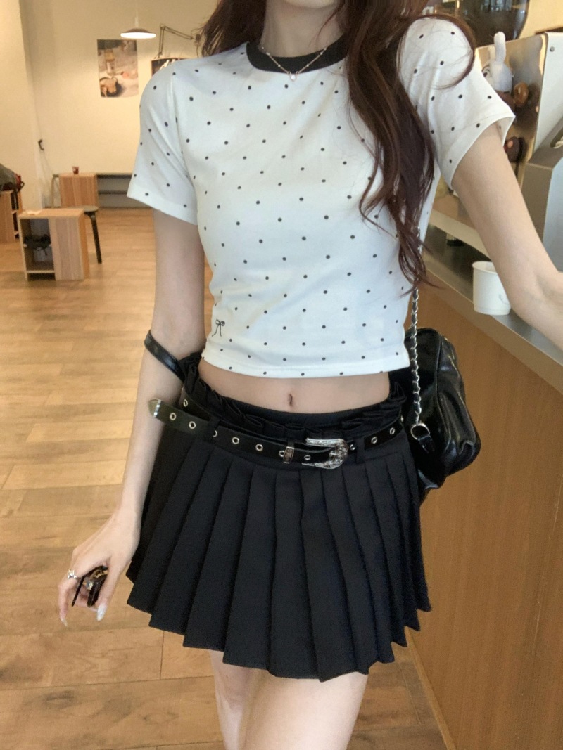 波点白色正肩短袖T恤女夏季新款bm纯欲风修身打底短款上衣