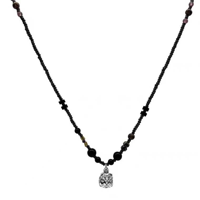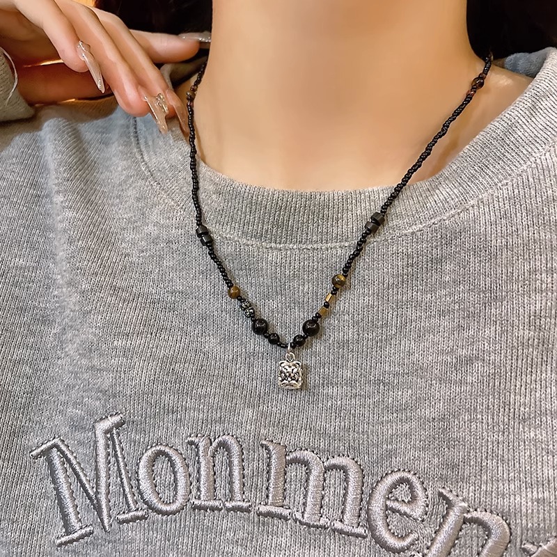 国潮醒狮串珠项链女新中式国风复古锁骨链女高级感小众设计毛衣链