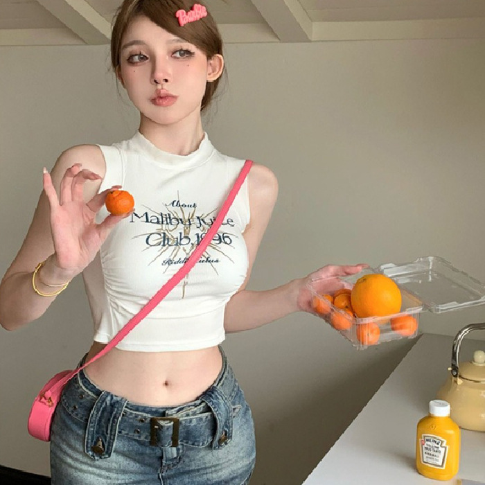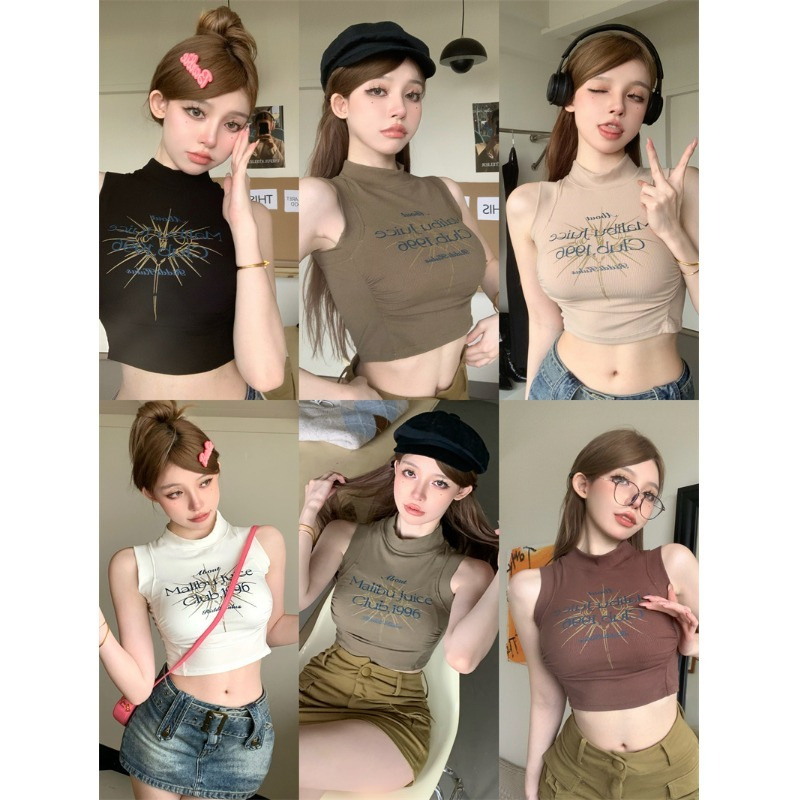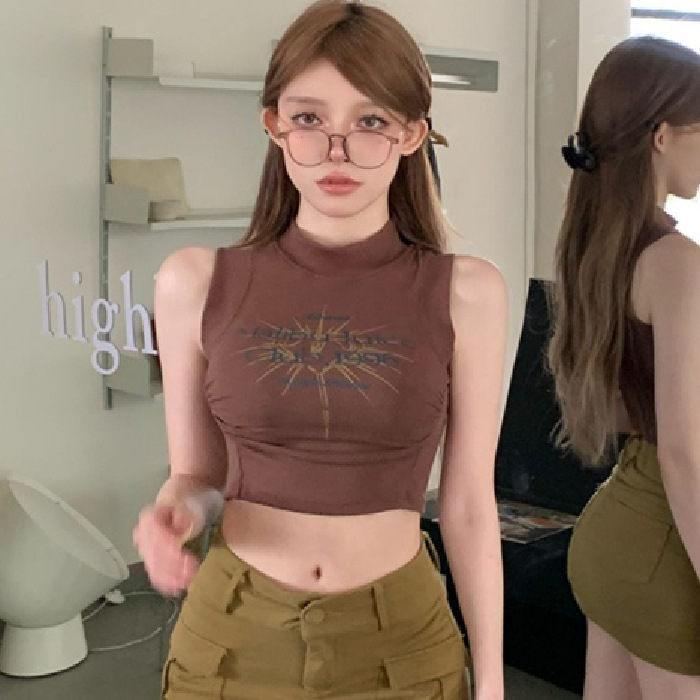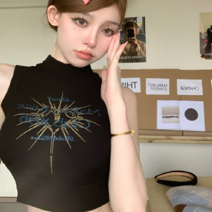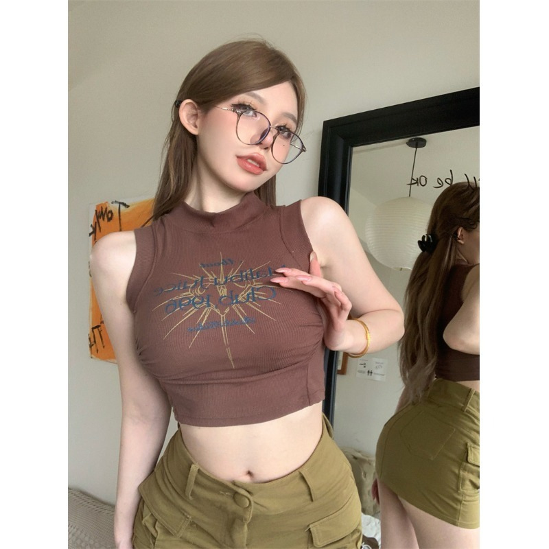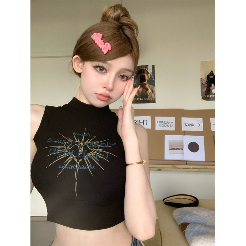 纯欲别致独特美式复古辣妹短款露脐背心外穿修身小众无袖上衣女