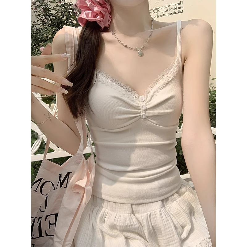 白色纯欲v领性感美背吊带女夏季bm辣妹蕾丝花边收腰无袖背心上衣