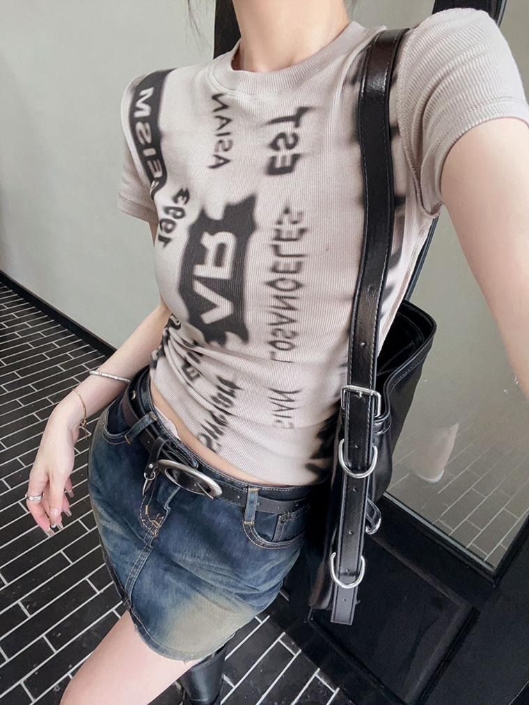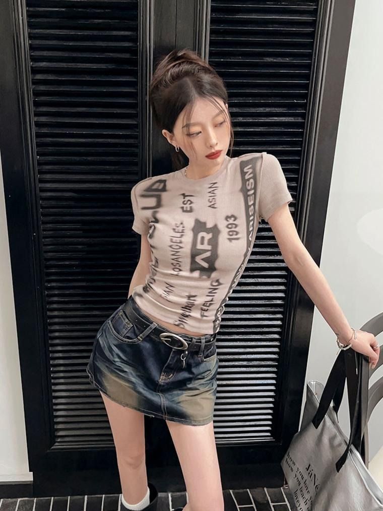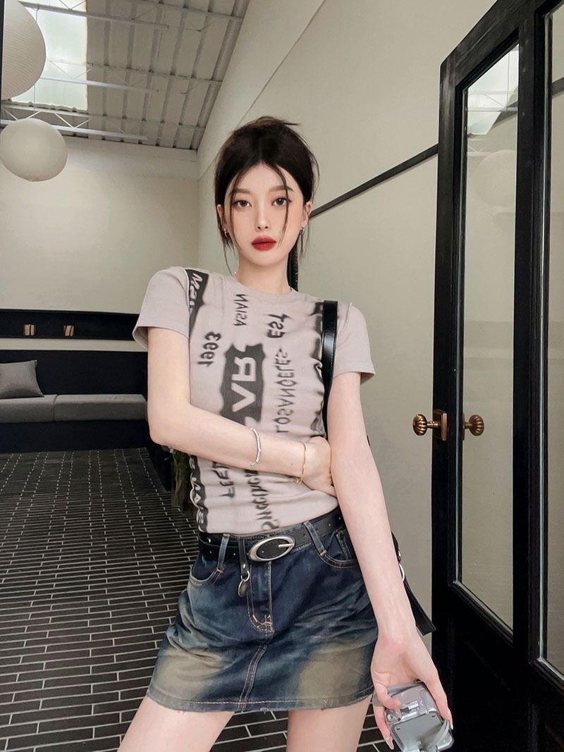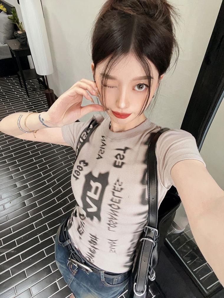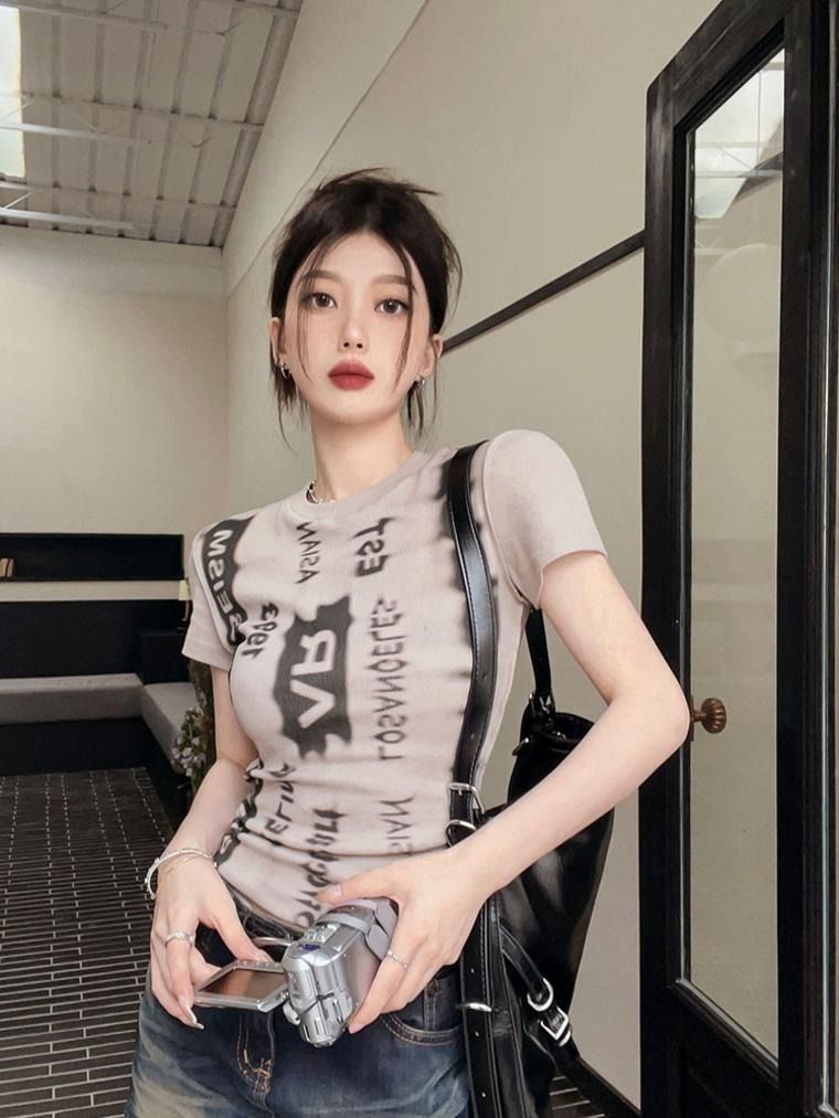 ins性感美式街头设计感短袖女夏季复古辣妹t恤修身显瘦短款上衣女