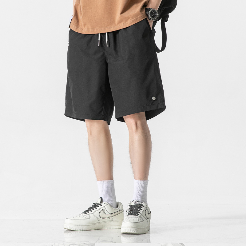 夏季新品冰丝速干短裤男日系潮牌简约百搭直筒薄款抽绳休闲五分裤