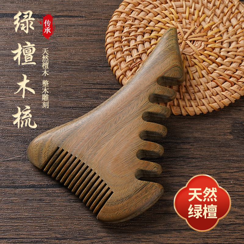 玉檀木圆润梳齿按摩梳天然绿檀木大怪兽多功能经络按摩梳
